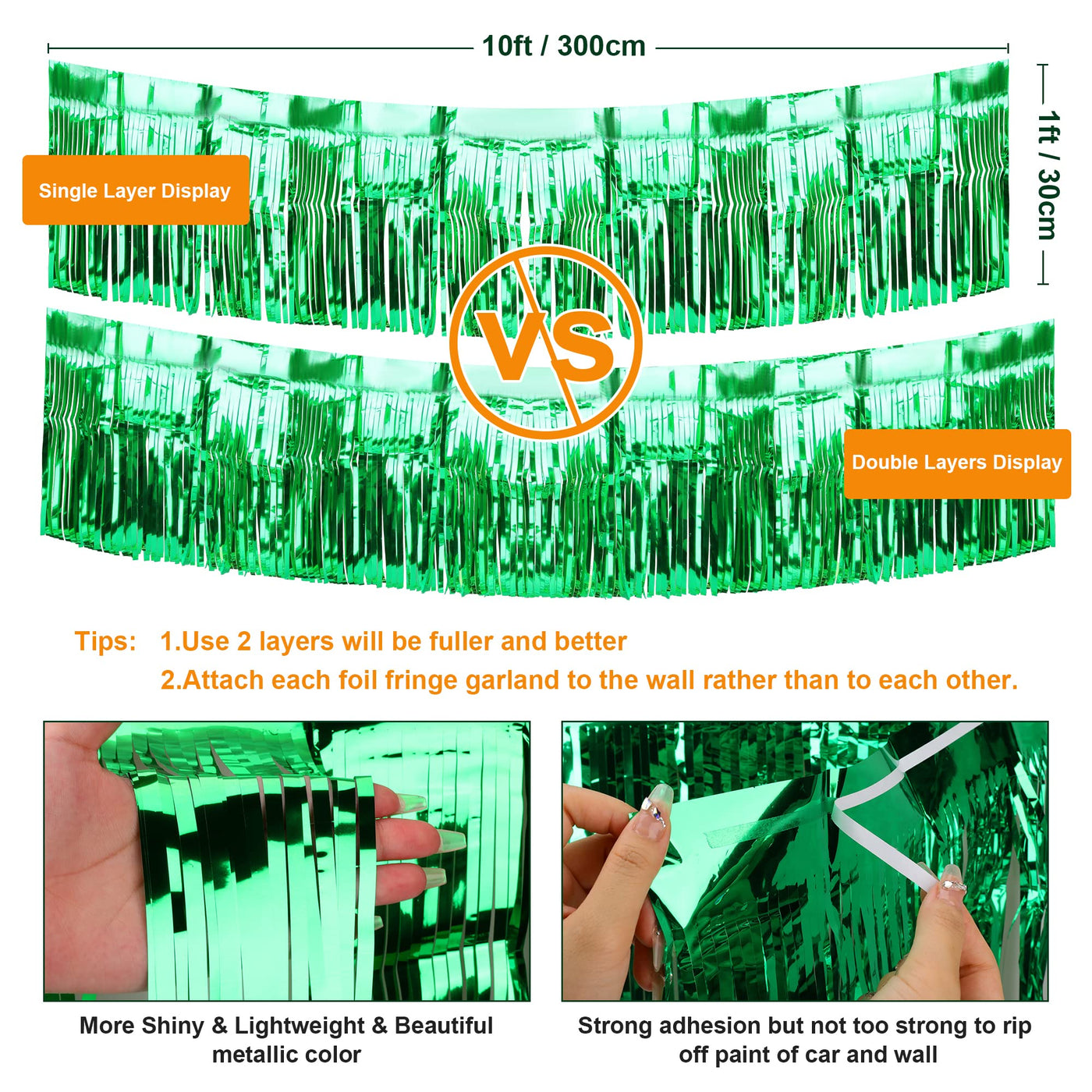 • Q: How many packs are included in the purchase? A: The purchase includes 4 packs of green foil fringe curtains.