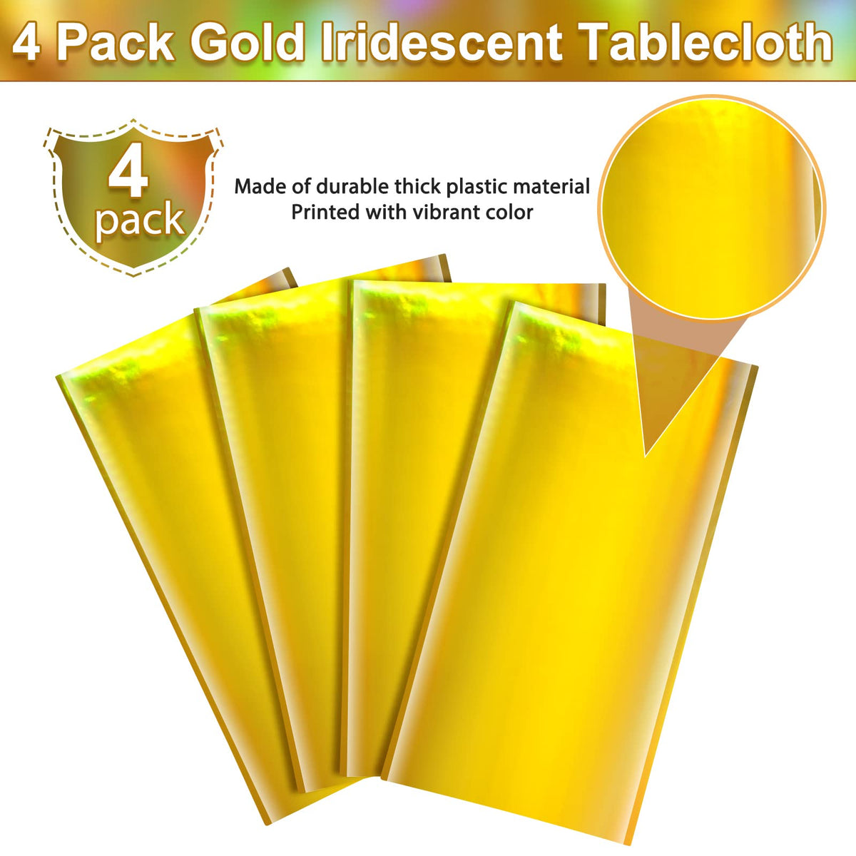 4 Pack Gold Iridescent Plastic Tablecloths Shiny Disposable Laser Rectangle Table Covers Holographic Foil Tablecloth Iridescent