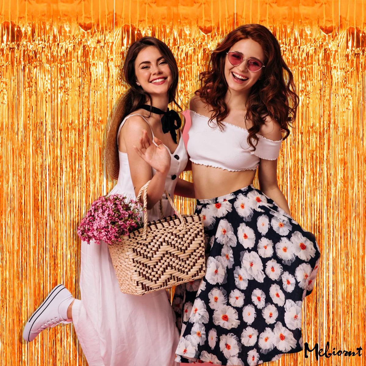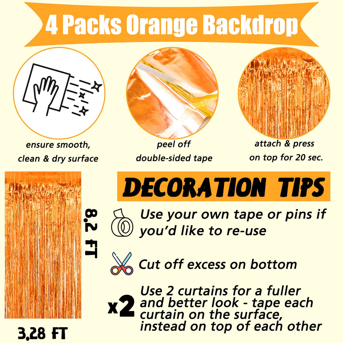4 Pack Orange Fringe Curtain Backdrop, 3.2Ft X 8.2Ft Metallic Tinsel Foil Fringe Streamers Background For Photo Booth Birthday W