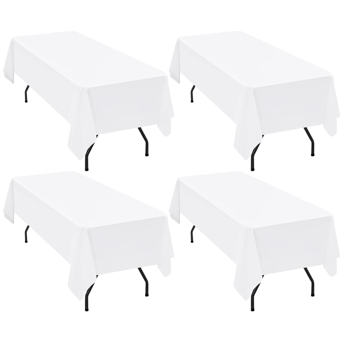 • Q: How many tablecloths are included in the package? A: The package includes four packs of the white square polyester tablecloth.