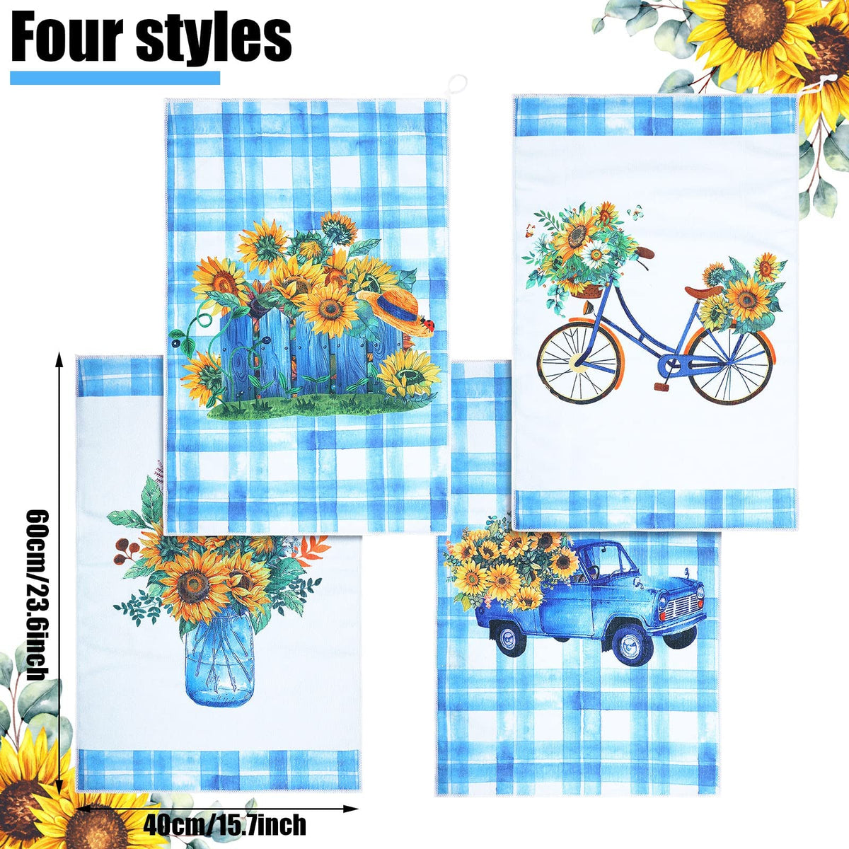 4 Pcs Kitchen Towels Sunflower Bee Dish Towels Decorative Absorbent Hand Polyester Towel with Hanging Loop for Kitchen Dishes Tea Towels for Home Housewarming Gifts Decor 16 x 24'' (Blue Romantic)