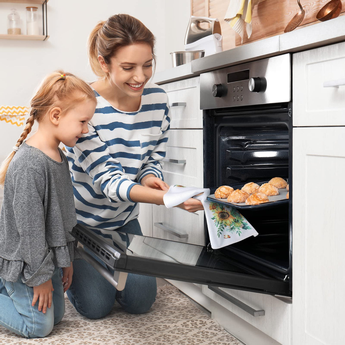- Q: How many towels are included in the set? A: The set includes four sunflower kitchen towels, each featuring a different design.