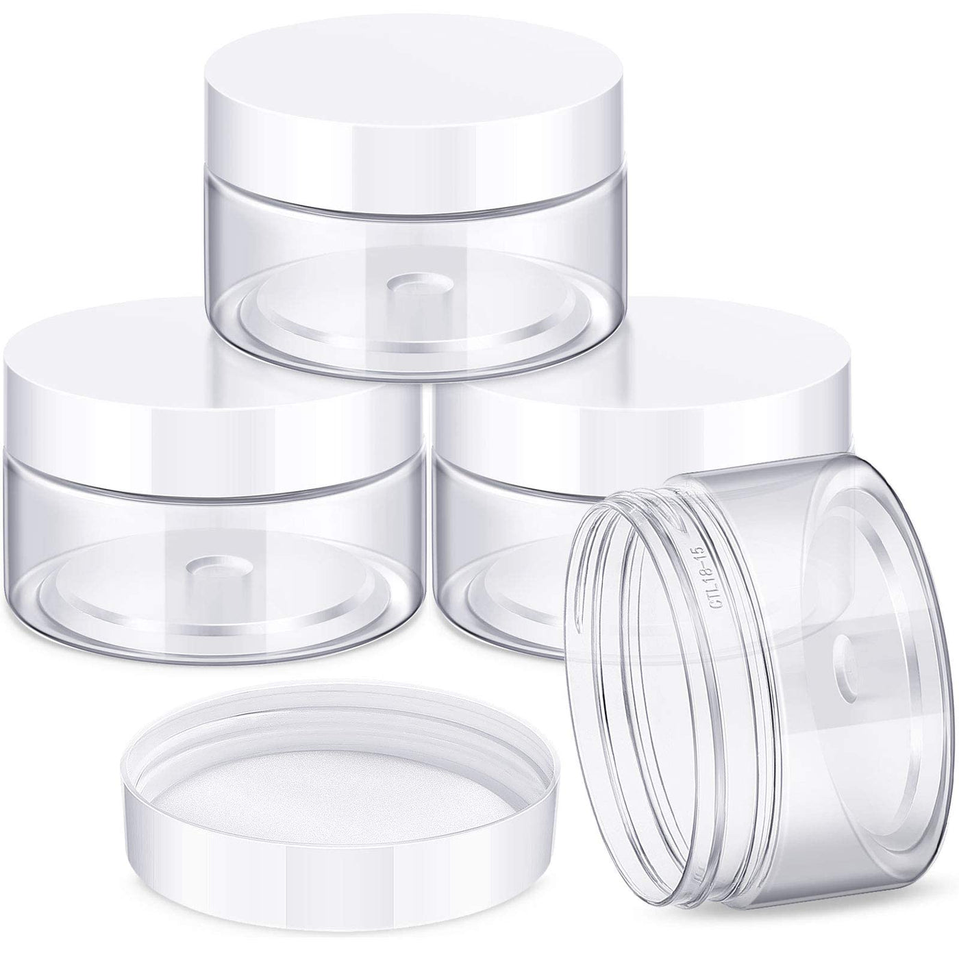 4 Pieces Round Clear Wide-mouth Leak Proof Plastic Container Jars with Lids for Travel Storage Makeup Beauty Products Face Creams Oils Salves Ointments DIY Making or Others (White 1 Ounce)
