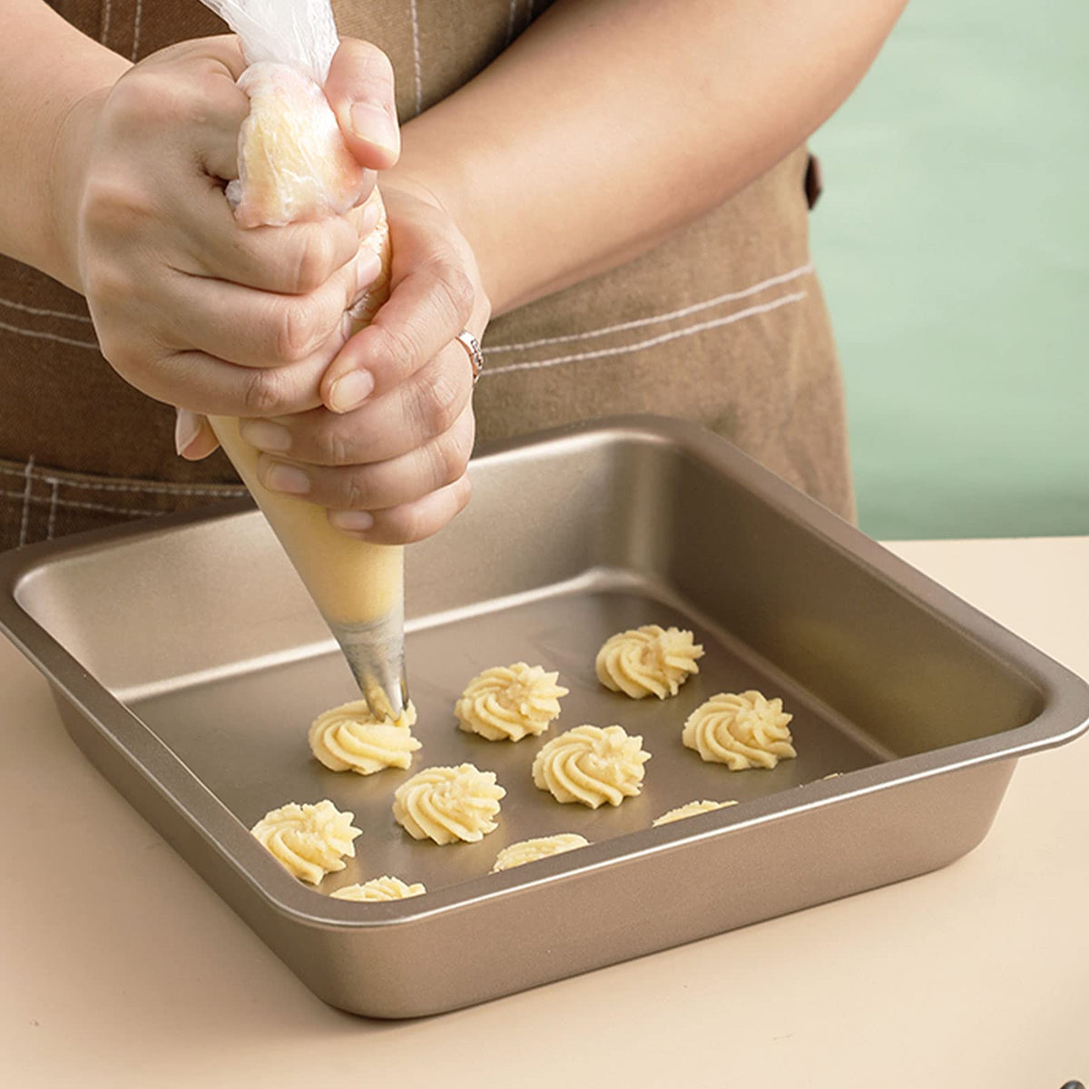 - Q: How do I ensure a good grip when using these piping bags? A: The bags feature a textured surface that provides a non-slip grip, allowing for better control when squeezing out the icing or frosting.