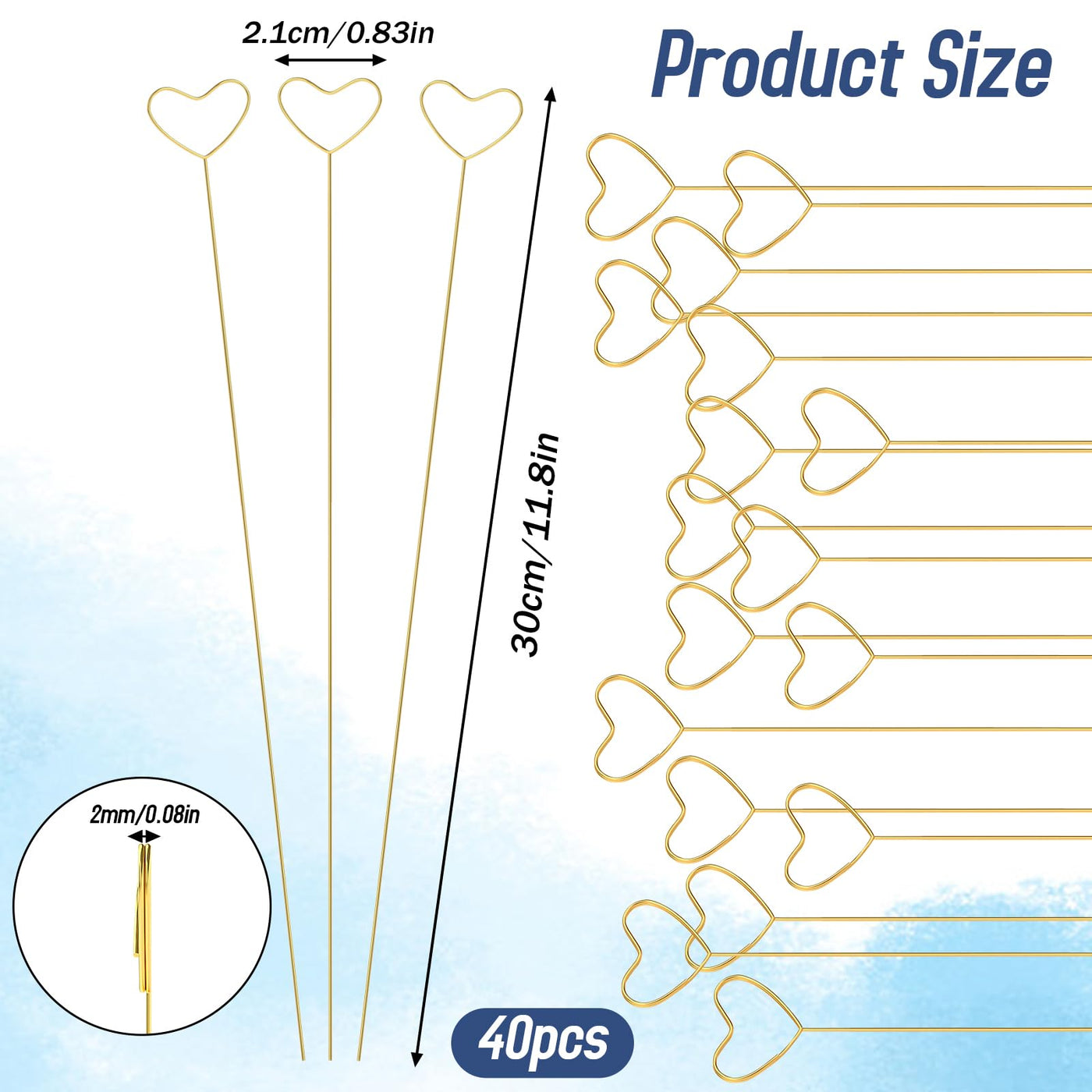 40Pcs Floral Picks Metal Floral Place Card Holder, Floral Card Holder Picks, Heart Loop Picture Holders, Flower Card Holder Stic