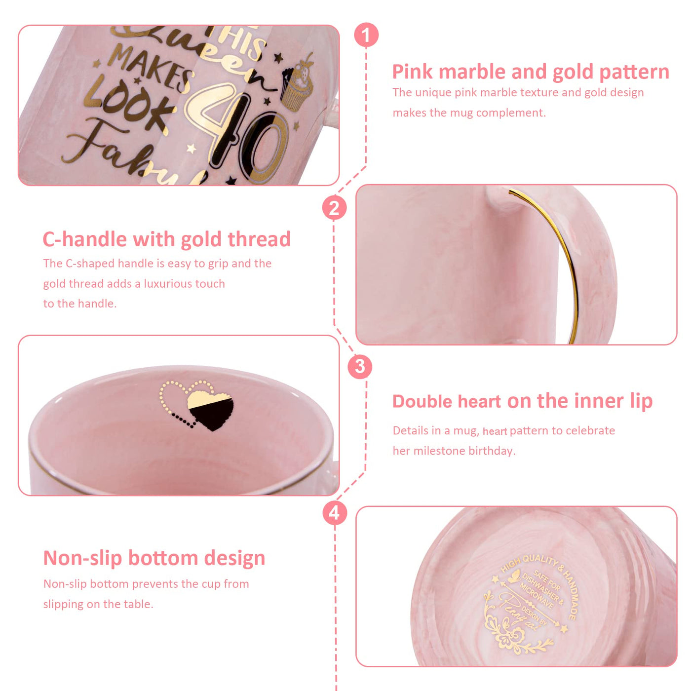 40Th Birthday Gifts Women - 14Oz Fabulous Pink Coffee Mug With Gold Pattern - Unique 40Th Birthday Gift Ideas For Mom Sister Aun