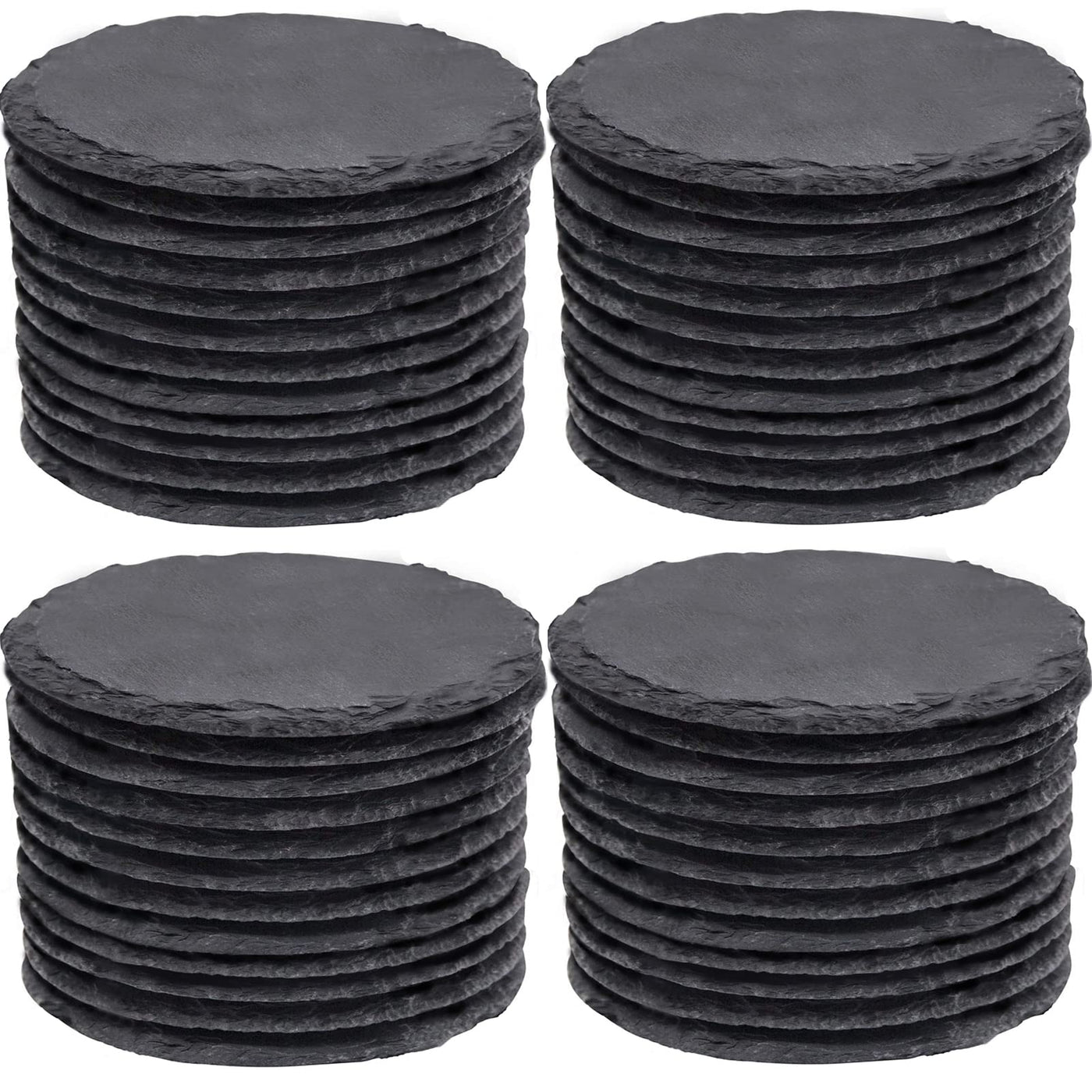 48 Pcs Coasters For Drinks, Maprial 4 Inch Slate Coasters, Laser Engraving Blanks Black Stone Coaster Set Round Natural Handmade