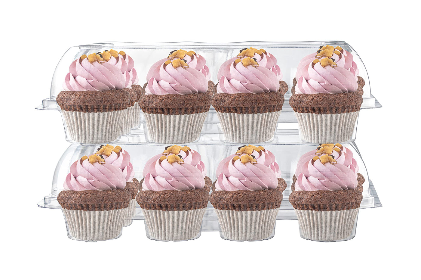 - Q: How many cupcakes can these containers hold? A: Each container is designed to hold a dozen (12) cupcakes, with spacious high-dome compartments to accommodate tall frosting.