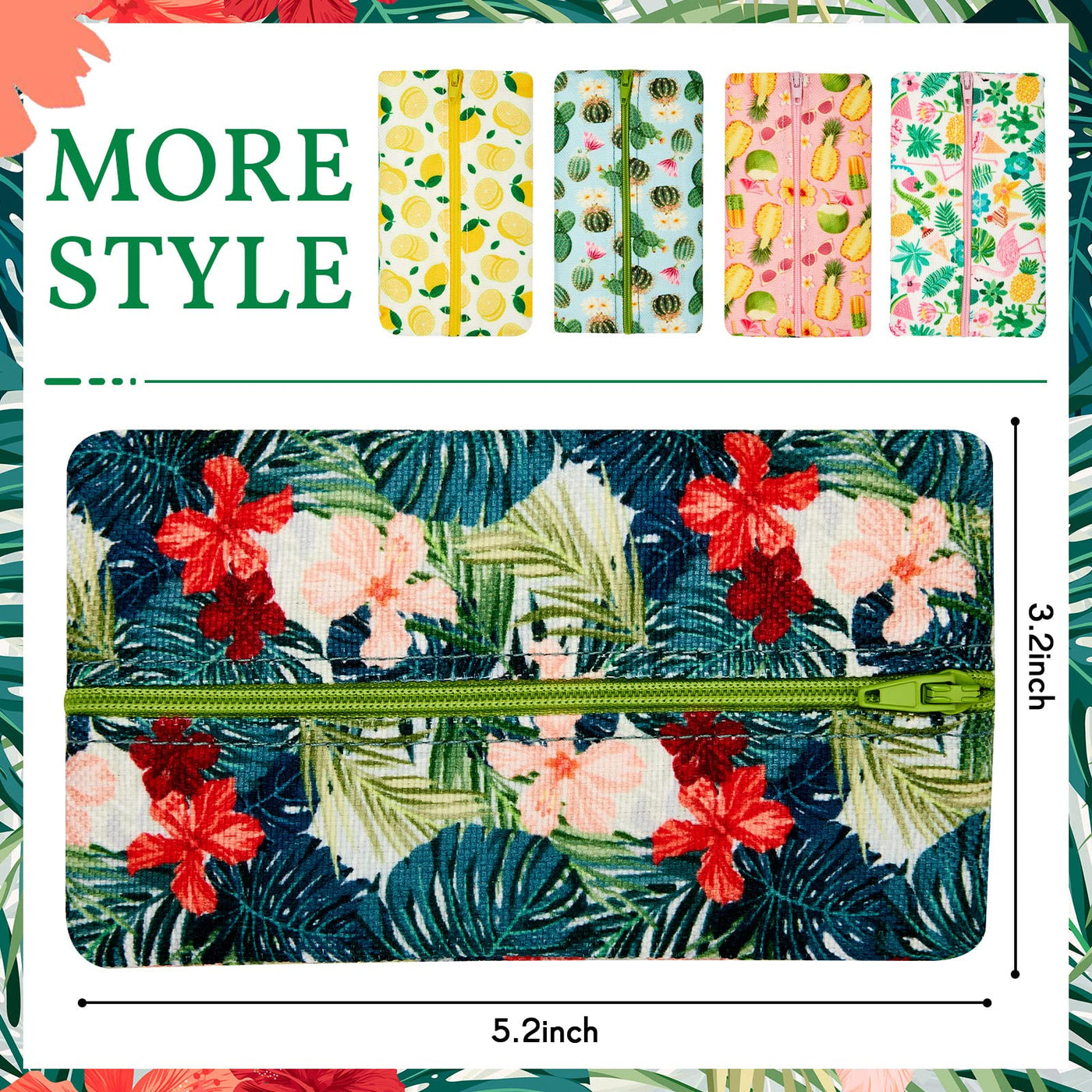 5 Pieces Tissues Purse Pocket Tissue Holder Reusable Travel Tissue Pouch Fabric Zipper Enclosed Small Size Flower Pattern Tissue Holder for Purse Coins for Summer 5.25 x 3 Inches (Passion Style)