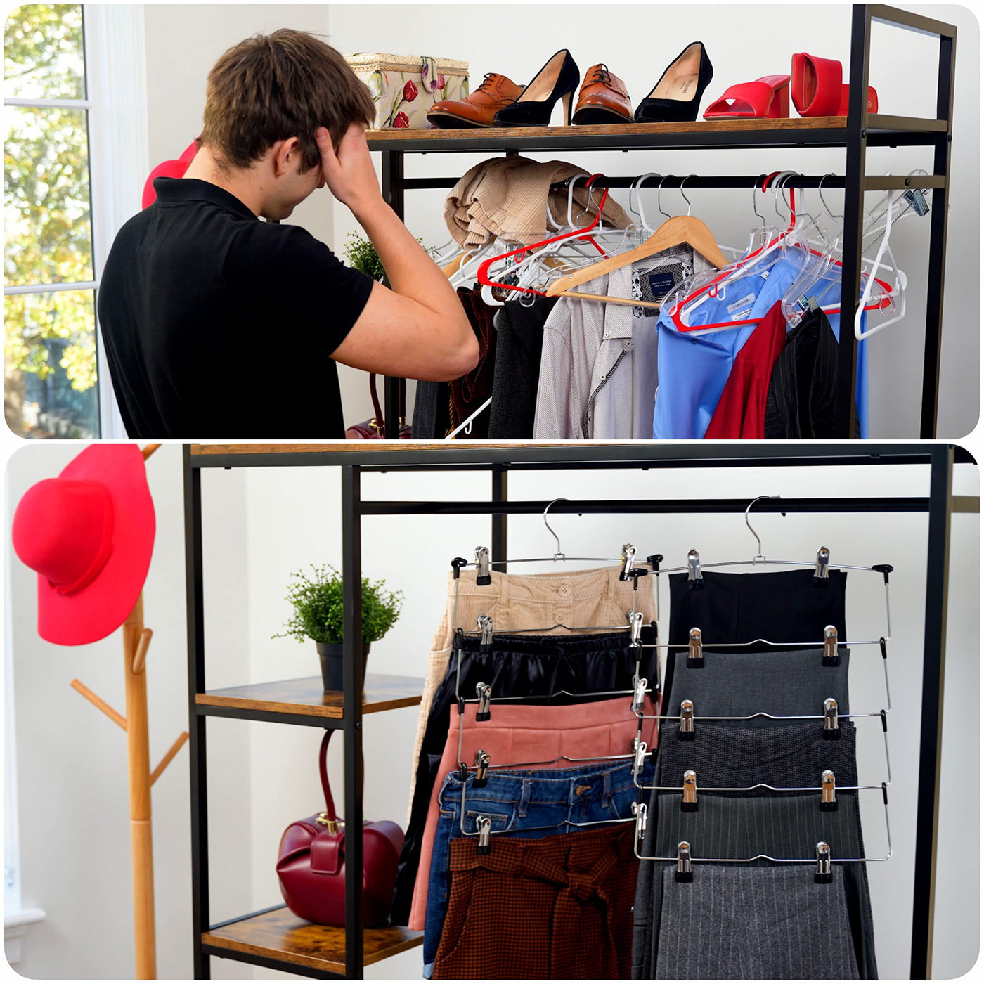 5-Tier Skirt Hangers with Clips (3 PK) Pant Hangers Space Saving Multiple Hangers in one Clothes Hangers with Clips Multiple Pants Hangers for Closet Bottom Hangers Metal Pants Hangers with Clips