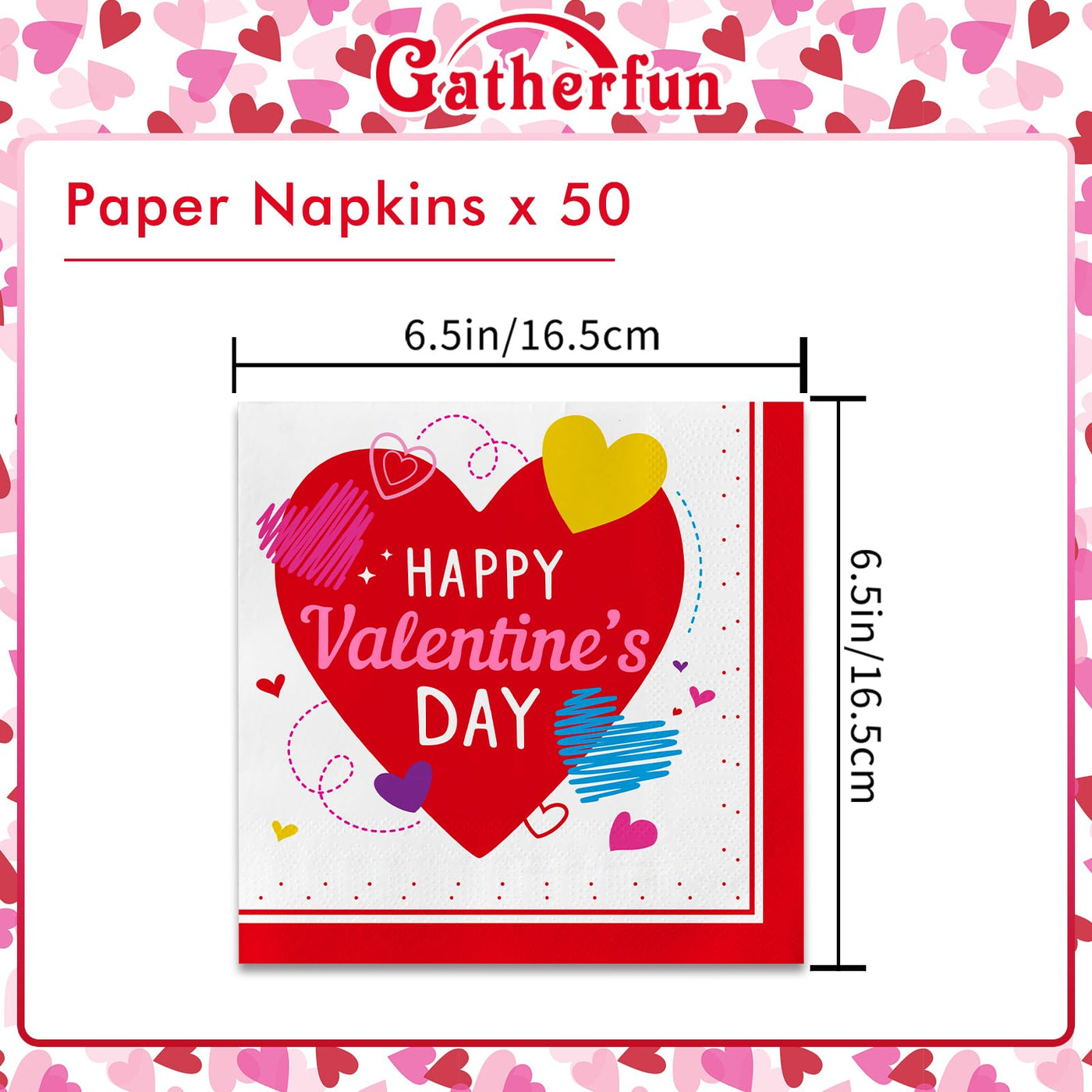 - Q: How many napkins are included in this pack? A: This pack contains 50 disposable Valentine's Day napkins.