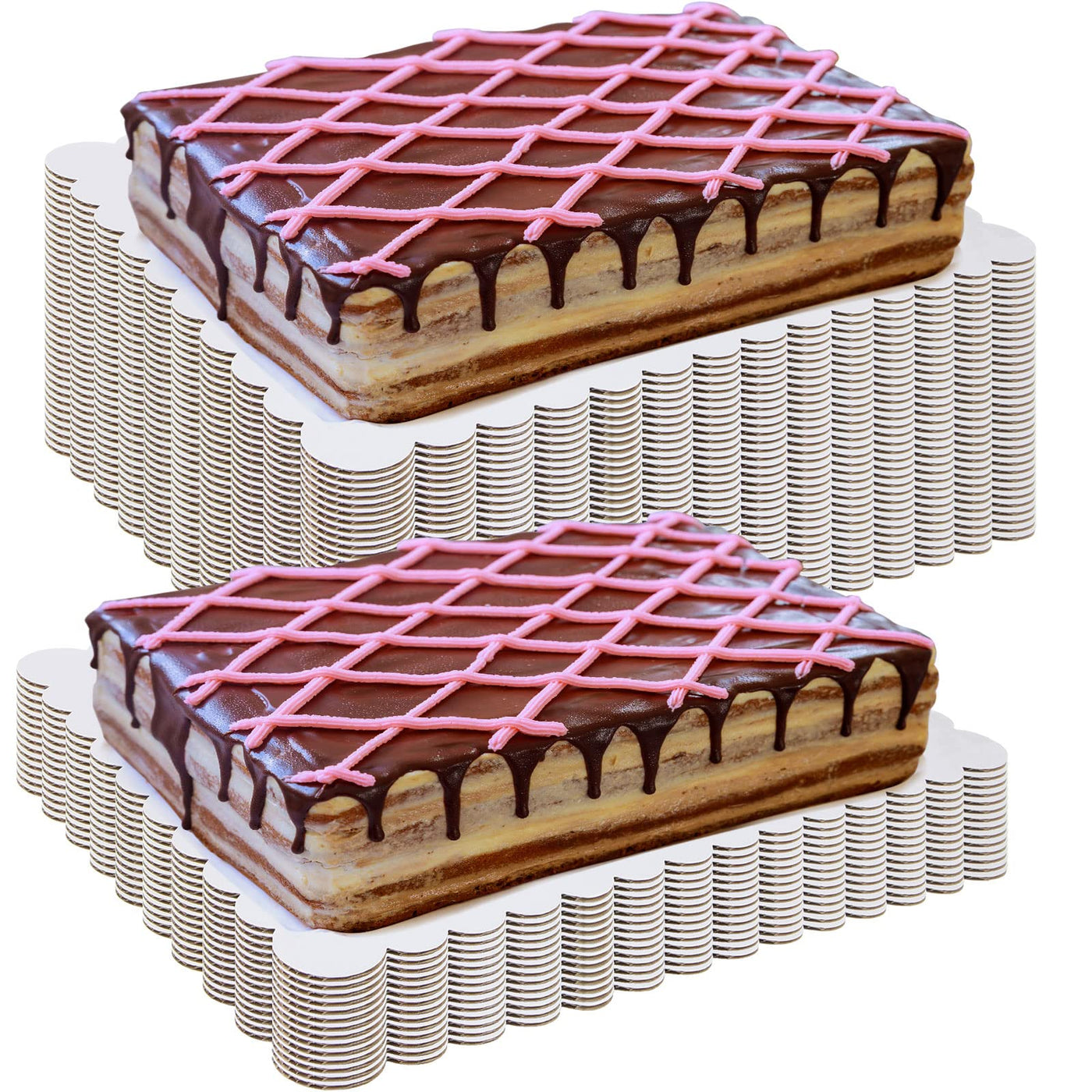 50 Pcs Rectangle Cake Board Disposable Cardboard Cake Bases Grease Proof Cake Plate Scalloped Edge Corrugated White Cakeboards D