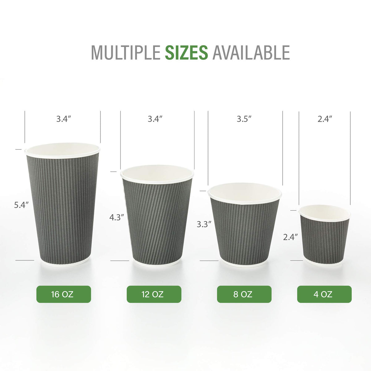 500-CT Disposable Gray 16-OZ Hot Beverage Cups with Ripple Wall Design: No Need for Sleeves - Perfect for Cafes - Eco-Friendly Recyclable Paper - Insulated - Wholesale Takeout Coffee Cup