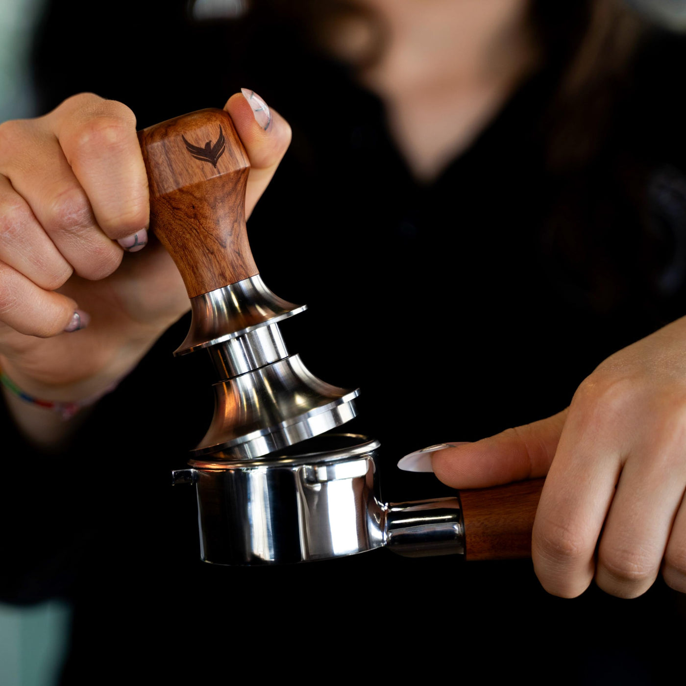 - Q: What materials is the tamper made from? A: The product details do not specify the material, but the tamper features a rosewood handle for a premium feel.