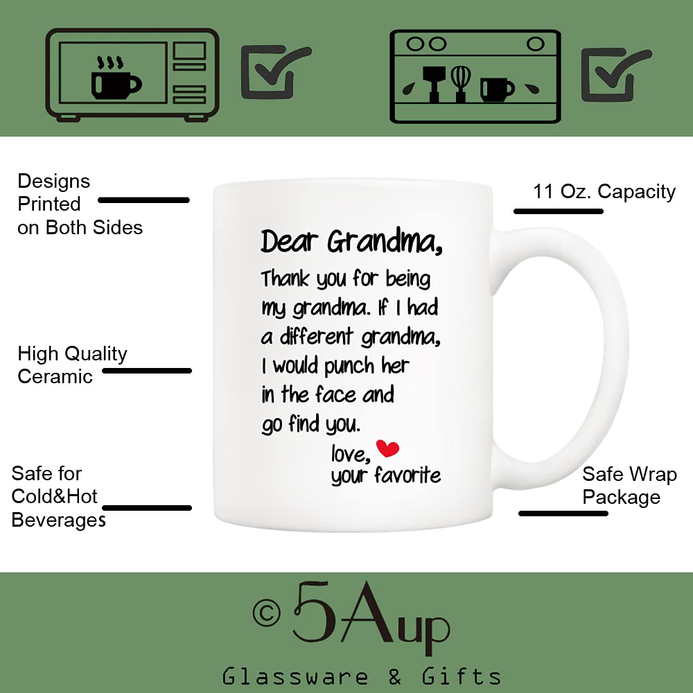 5Aup Mother's Day Funny Grandma Coffee Mug Christmas Gifts from Grandson Granddaughter Dear Grandma Thanks for Being... Love Your Favorite Cups 11 Oz Birthday Present Idea for Grandmother