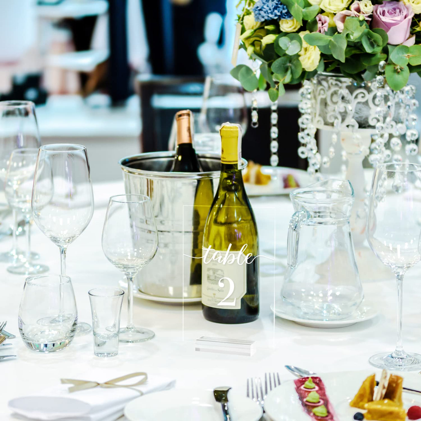 - Q: How do I care for the acrylic table numbers? A: To clean the table numbers, simply wipe them with a soft, damp cloth. Avoid using abrasive cleaners that may scratch the surface.
