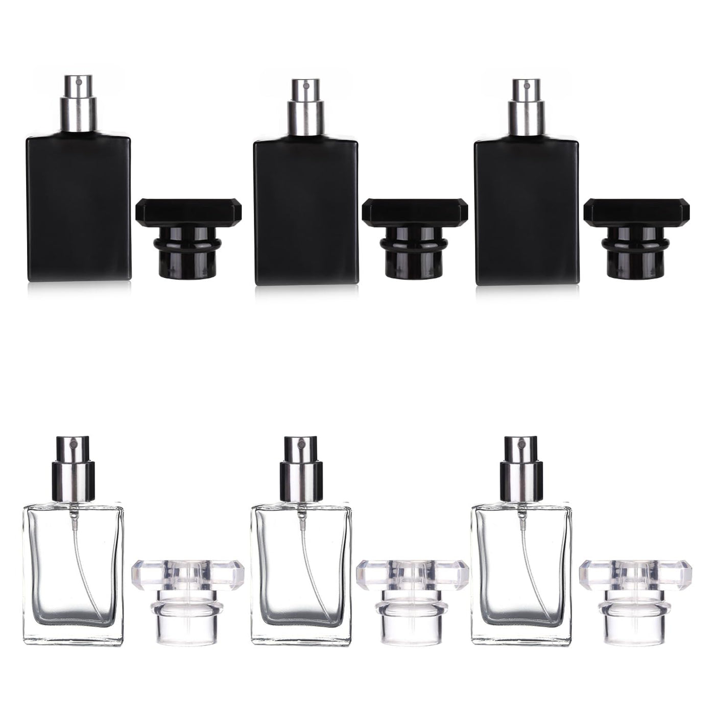 6 Pack 30Ml / 1 Oz Clear Black Refillable Perfume Bottle, Portable Square Empty Glass Perfume Atomizer Bottle Spray Applicator W