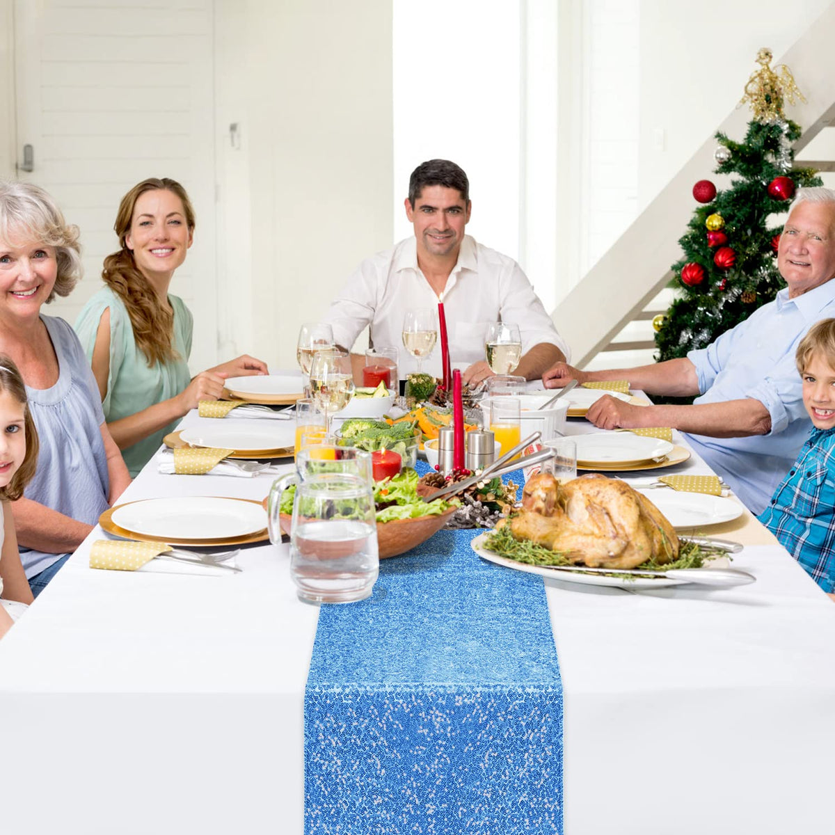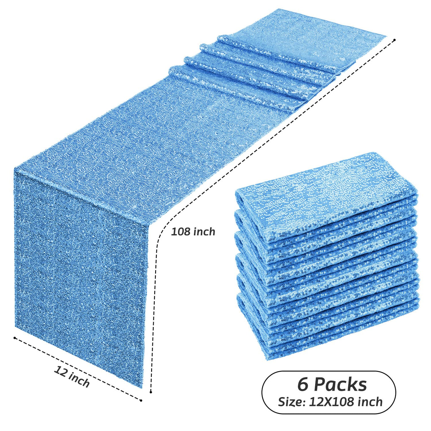 6 Pack Sequin Table Runner Baby Blue, 12 X 108 Inch Glitter Baby Blue Table Runner For Rectangle Table For Birthday, Wedding, Ba