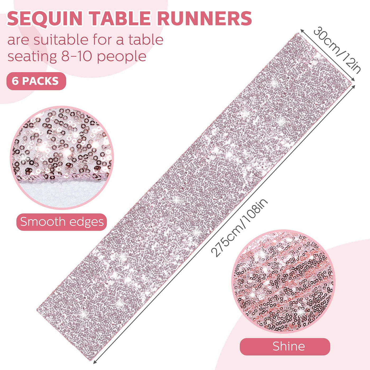 - Q: How many table runners are included in the package? A: The package includes six pieces of sequin table runners in rose gold color.