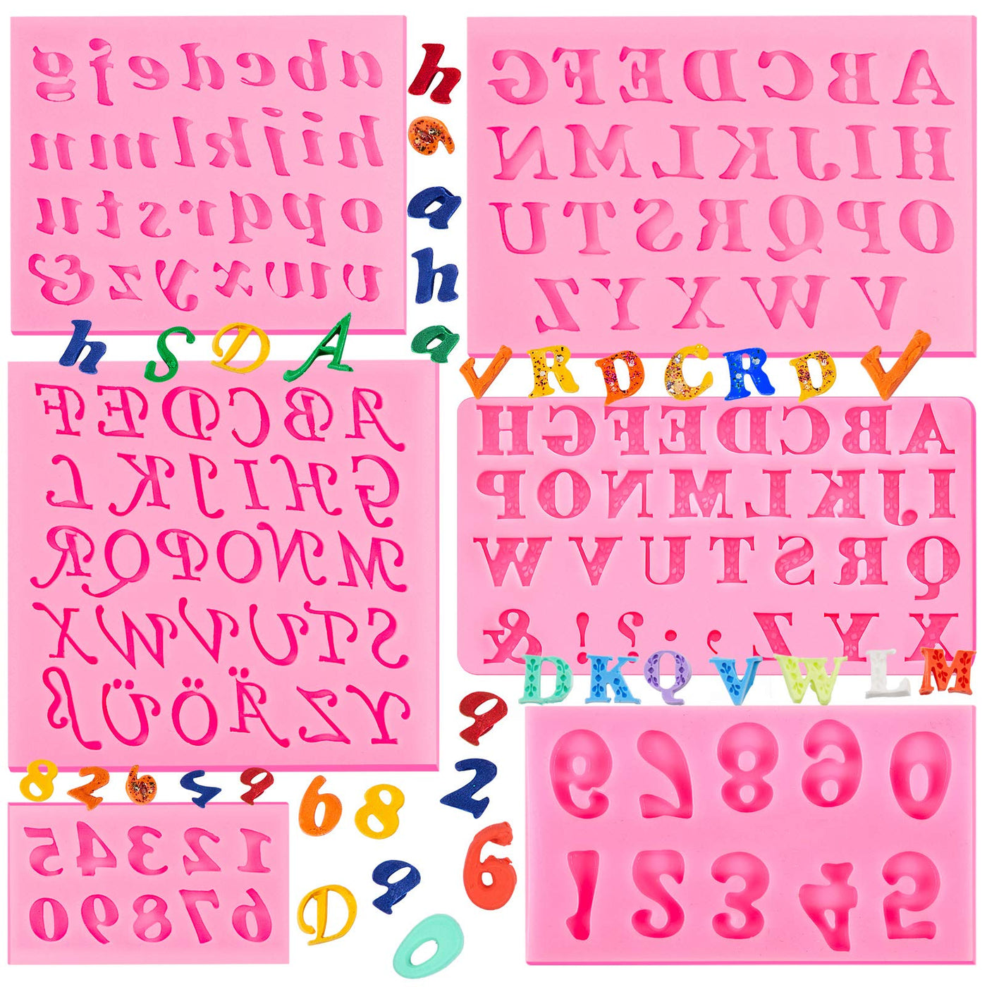 - Q: How many molds are included in the set? A: The set includes a total of 6 silicone molds, featuring uppercase and lowercase letters.
