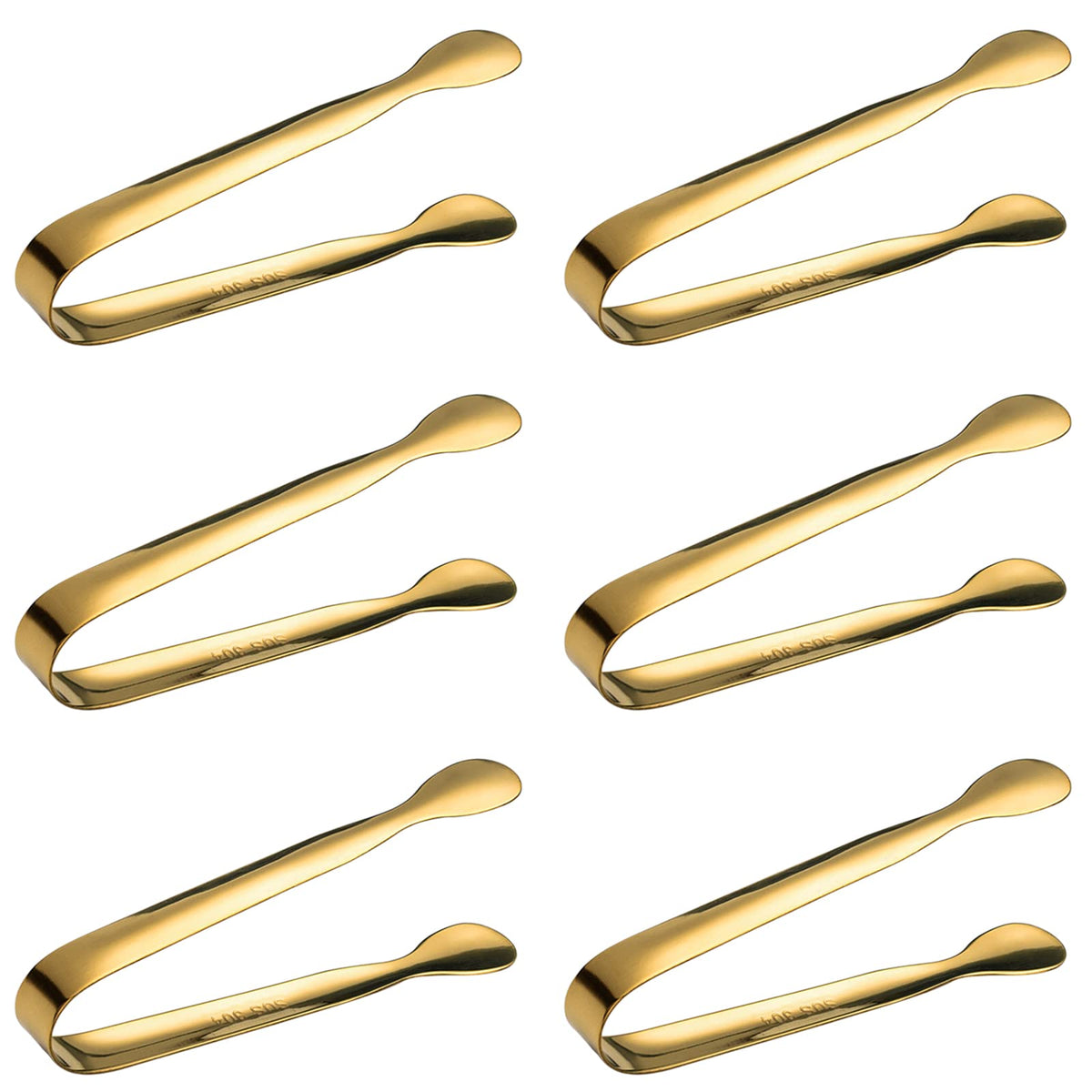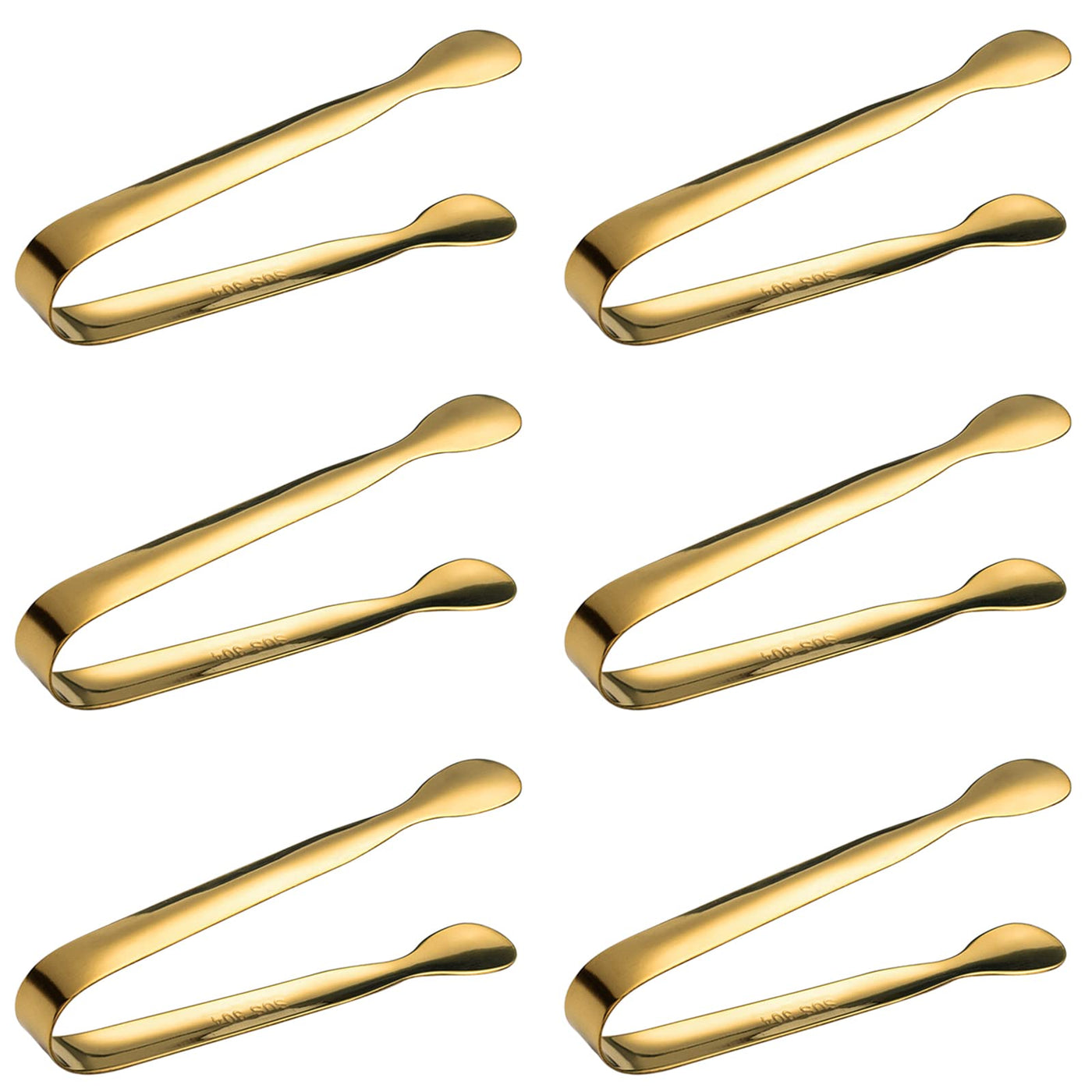 6 Pieces Mini Ice Tongs Sugar Tongs, Gold Stainless Steel Small Serving Tongs For Appetizers, Desserts, Coffee, Tea Party, Bar