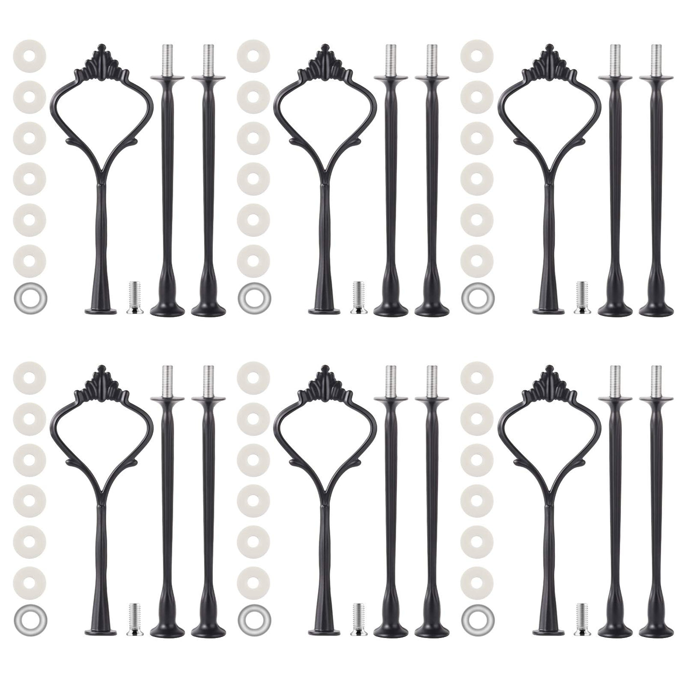 - Q: What is included in the 6 Set Tiered Tray Hardware package? A: The package contains 6 black cake stand fittings, each measuring 4.72" x 1.77" (12cm x 4.5cm).