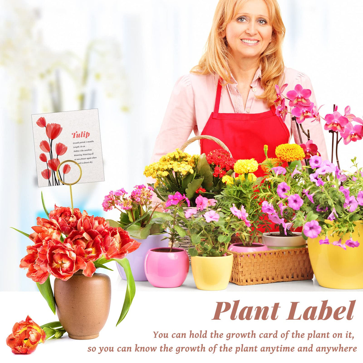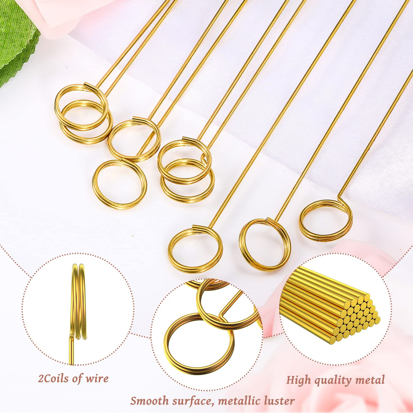 60 Pcs Metal Wire Floral Place Card Holder 11.81 Inches Round Gold Photo Clip Floral Card Holder Picks Flower Ring Loop Card Hol