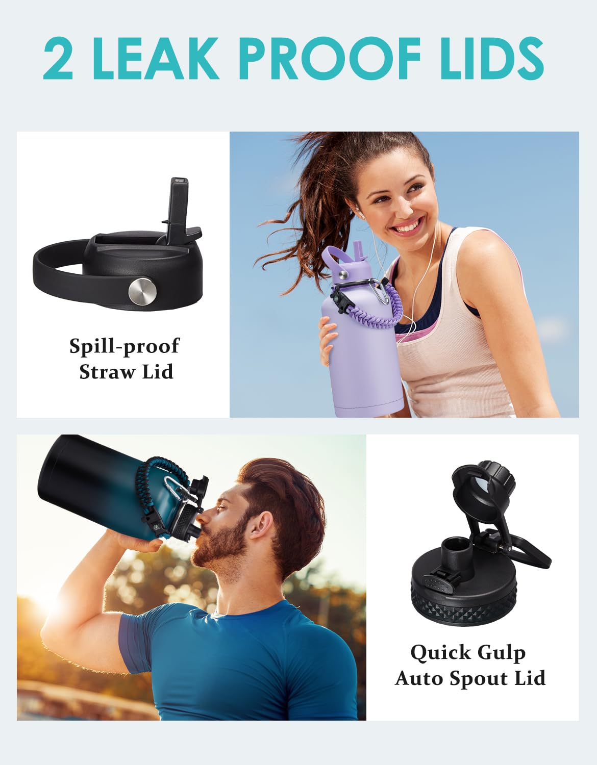 - Q: Is the 64 oz Insulated Water Bottle leak-proof? A: Yes, the VICKNIY stainless steel insulated water bottle features both a straw lid and an auto spout lid, both designed to be leak-proof, making it perfect for on-the-go use.