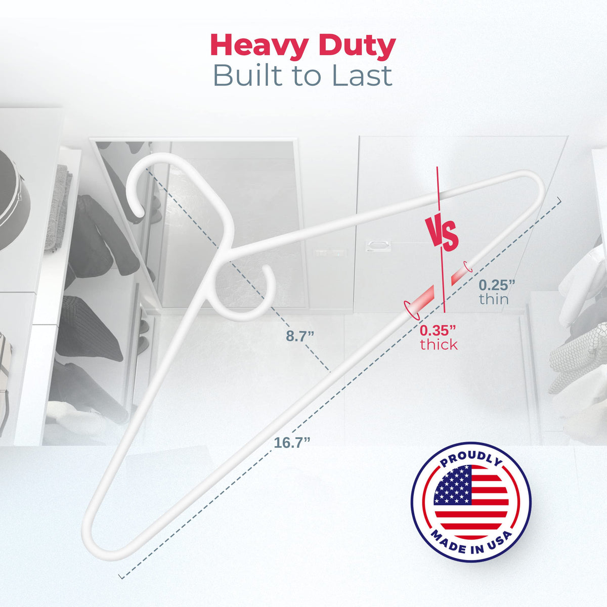 72Pk Made In Usa Heavy Duty Plastic Clothes Hangers Bulk, 20 30 50 100 Pack Available, Strong Plastic Hangers, Jacket Coat Hange
