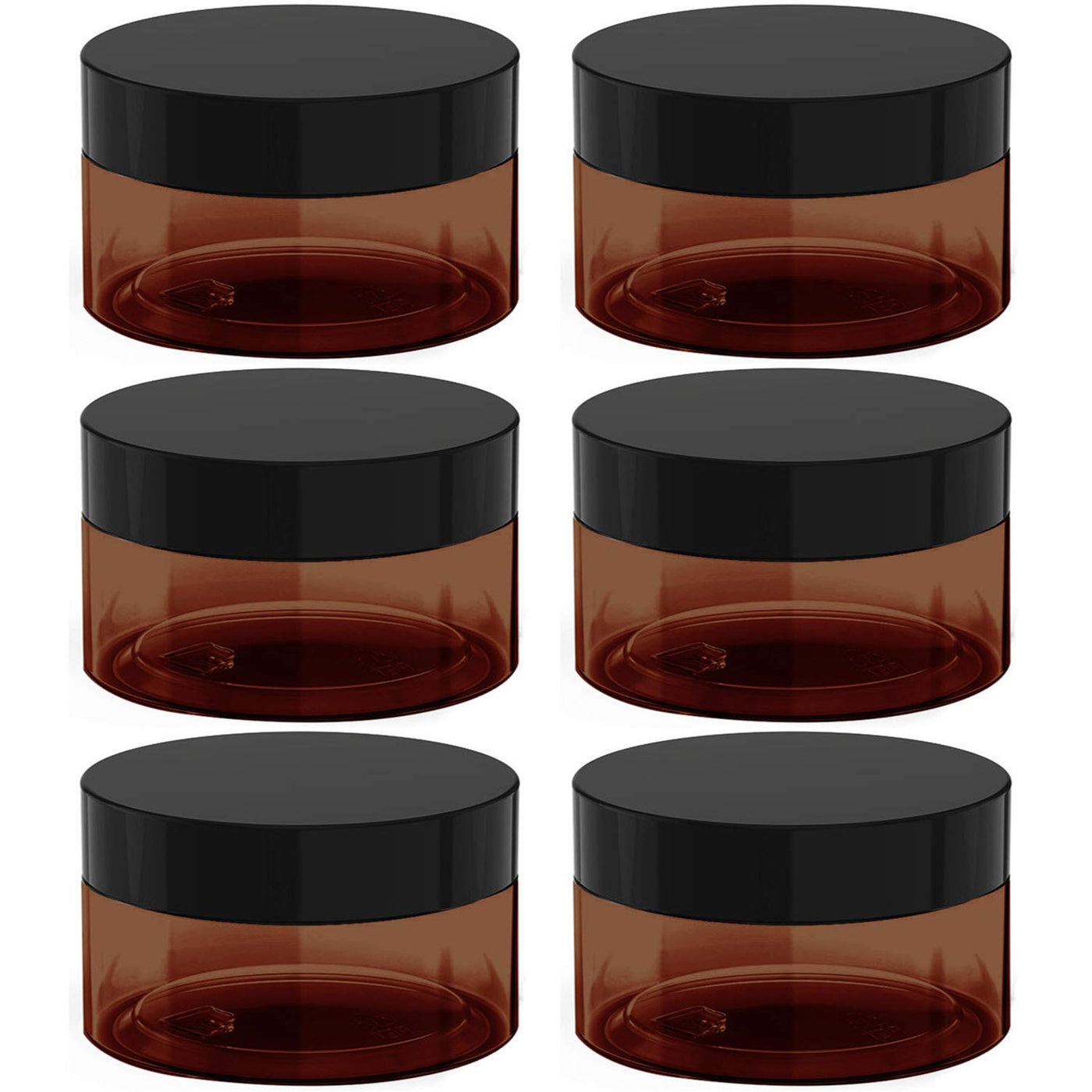 8 Oz Amber Plastic Cosmetic Jars Leak Proof Container With Black Lid For Cream, Lotion, Powder, Ointment, Beauty Products Etc, 6