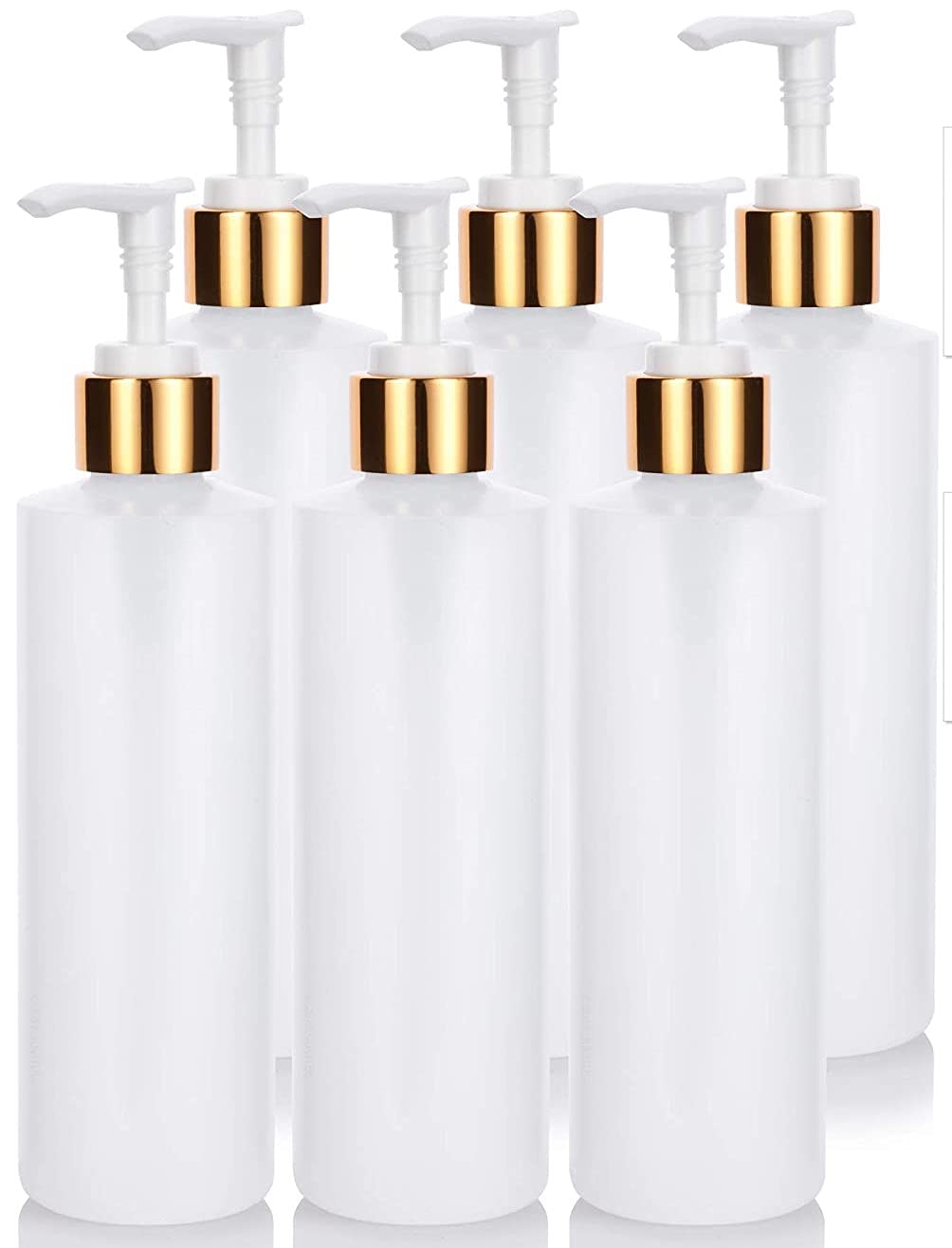 8 oz Clear Natural Refillable Plastic Squeeze Bottle with Gold Lotion Pump Dispenser (6 Pack)