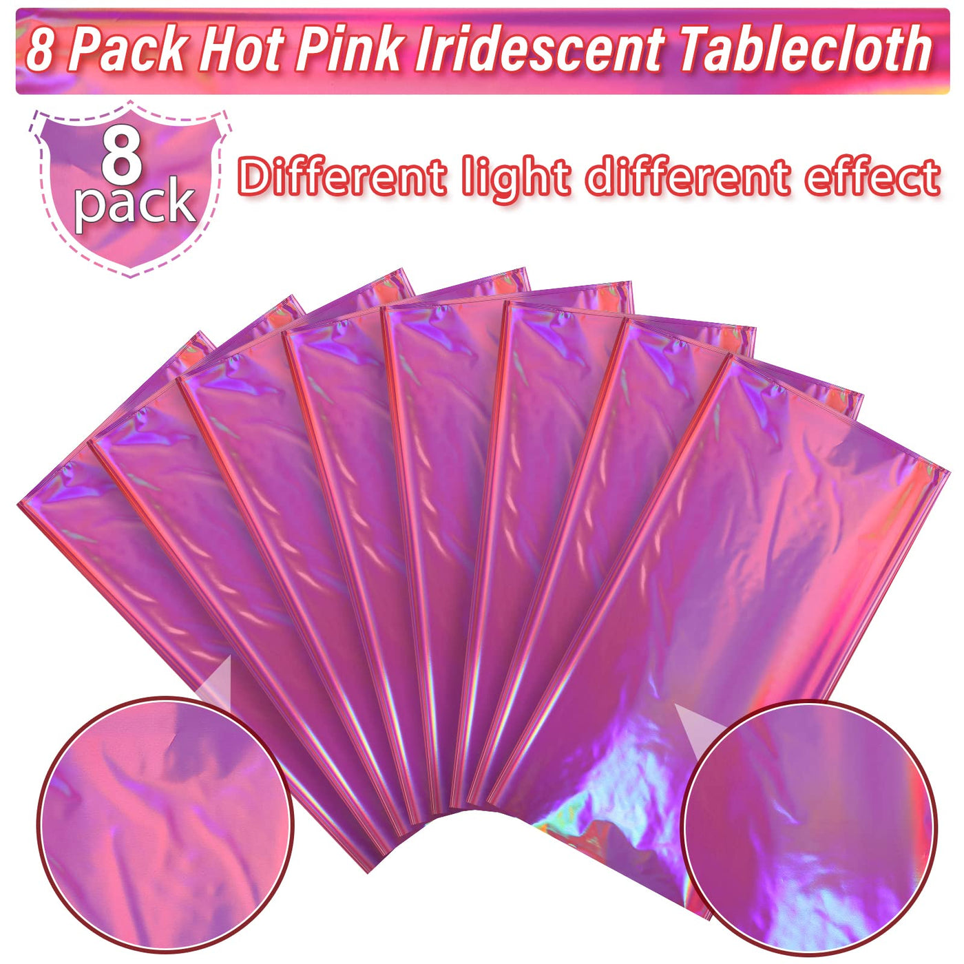 8 Pack Hot Pink Iridescence Plastic Tablecloths Shiny Disposable Laser Rectangle Table Covers Holographic Foil Tablecloth Irides