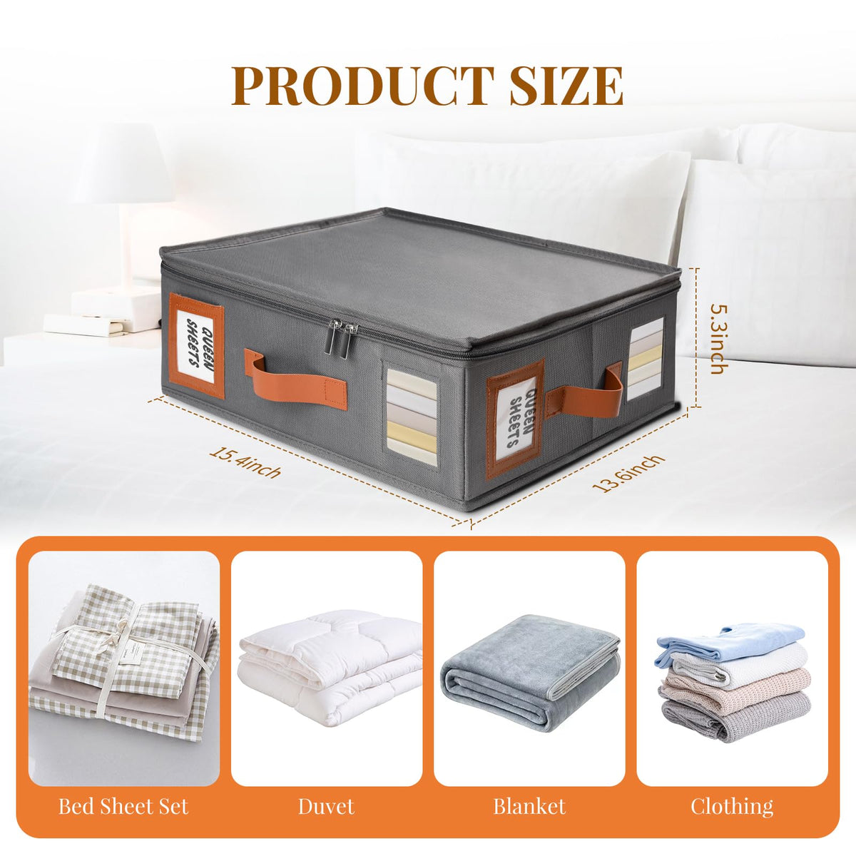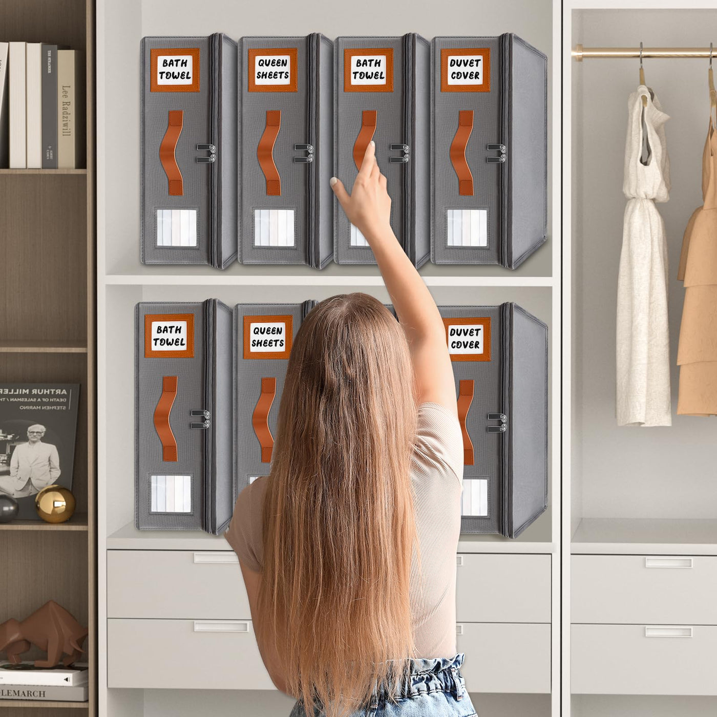 8 Pack Sheet Organizers and Storage (King & Queen Size), Foldable Linen Closet Bed Sheet Organizer with Window, Folding Bedding