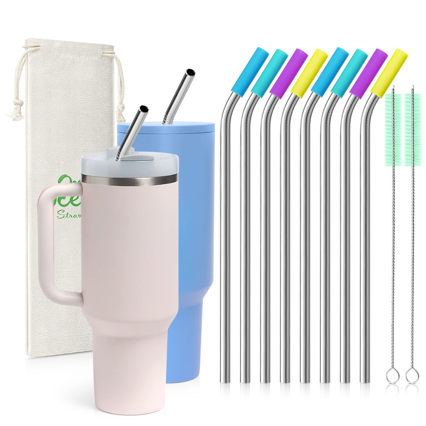 8 Piece 5/16 Inch (8Mm) Wide Bent Stainless Steel Straws For 40 Oz Tumbler With Handle, 12 Inch Long Reusable Metal Drinking Str