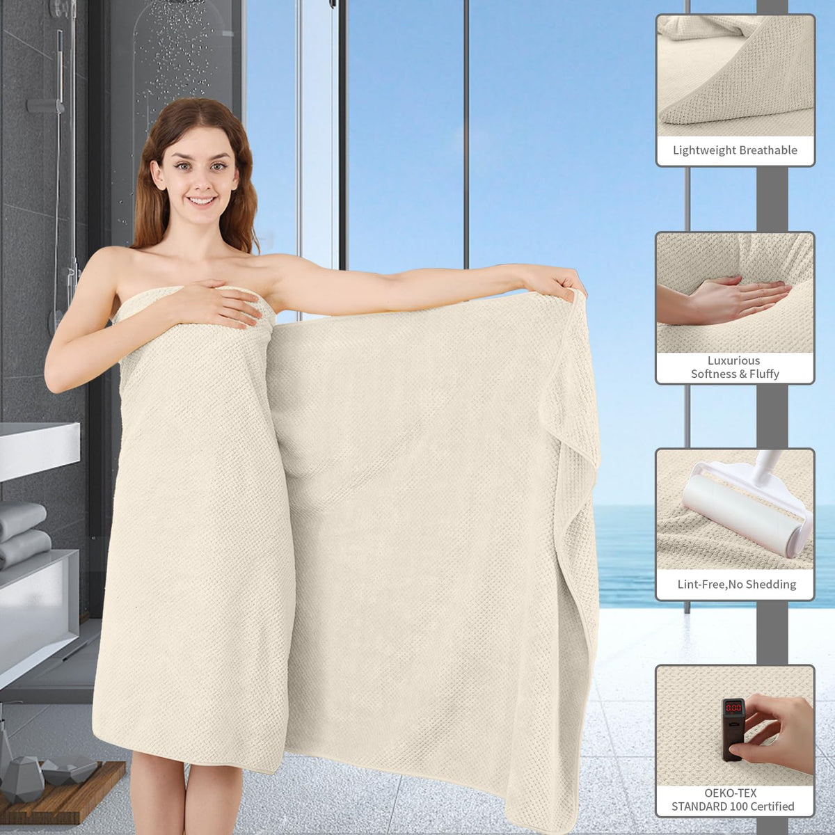 - Q: Are these towels oversized? A: Yes, the bath towels are oversized, measuring 35 x 70 inches, allowing them to completely wrap around your body for added comfort.
