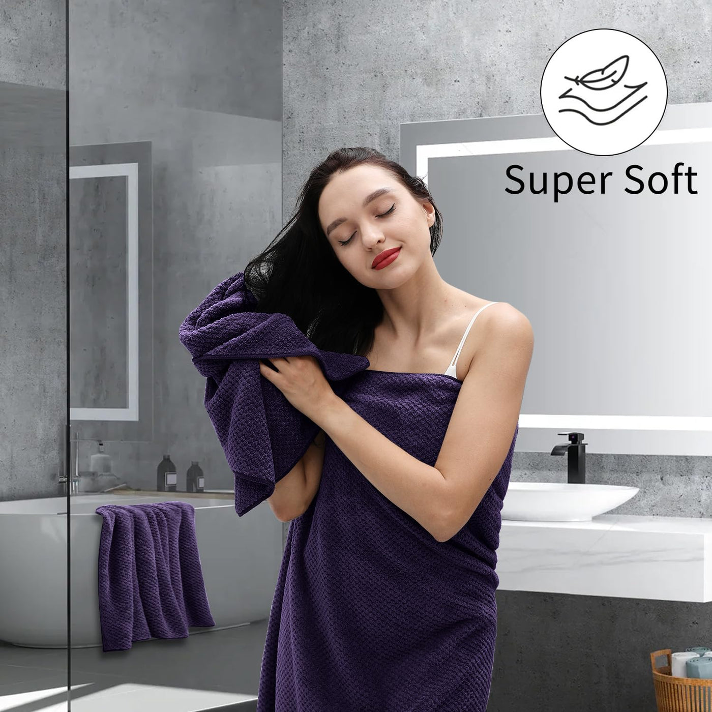 8-Piece Purplr Bath Towels Set,2 Oversized Large Bath Towels Sheet,2 Hand Towels And 4 Washcloths - 600 Gsm Soft Luxury Towel Se