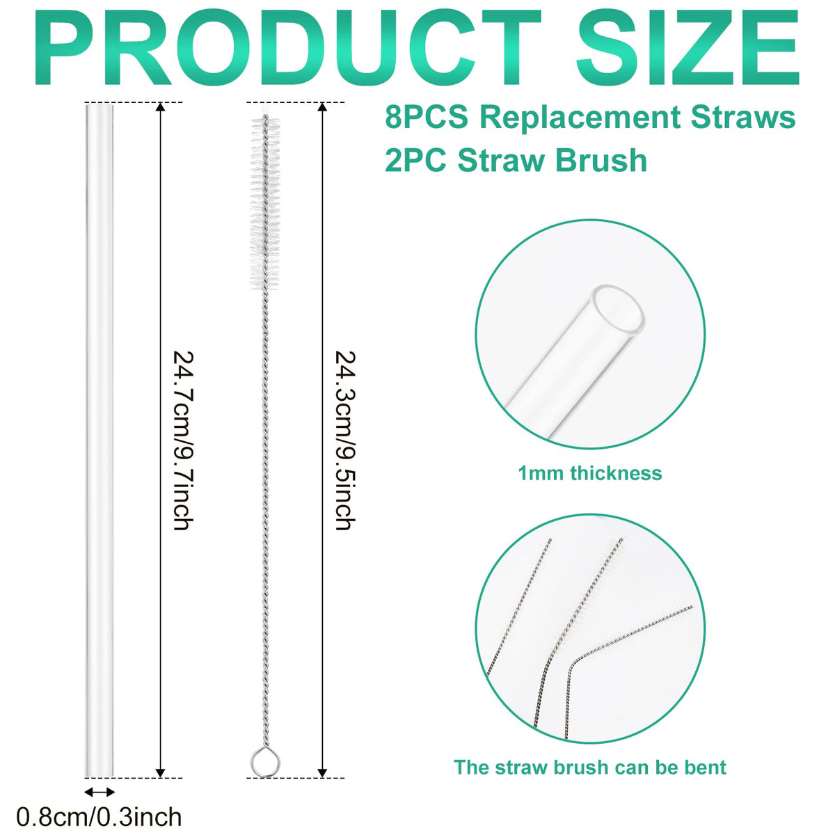 • Q: What is the length of the replacement straws? A: The replacement straws are 24.7cm or 9.7 inches in length.