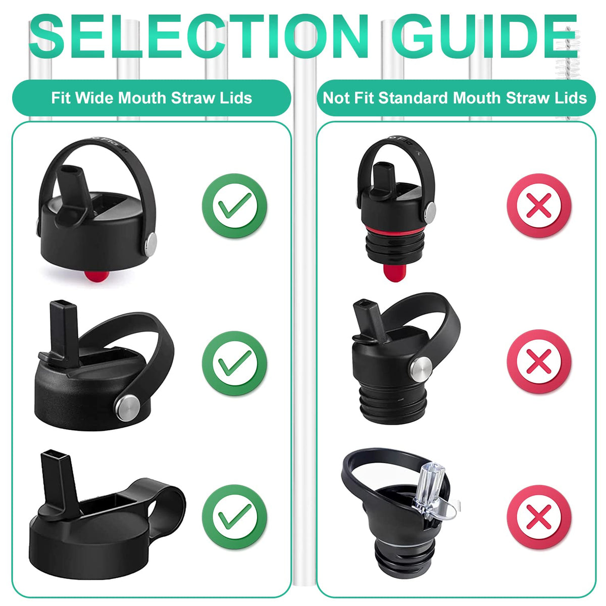 • Q: Are these straws compatible with other brands of water bottles? A: These straws are specifically designed for Hydro Flask wide mouth water bottles and may not work with other brands or sizes.