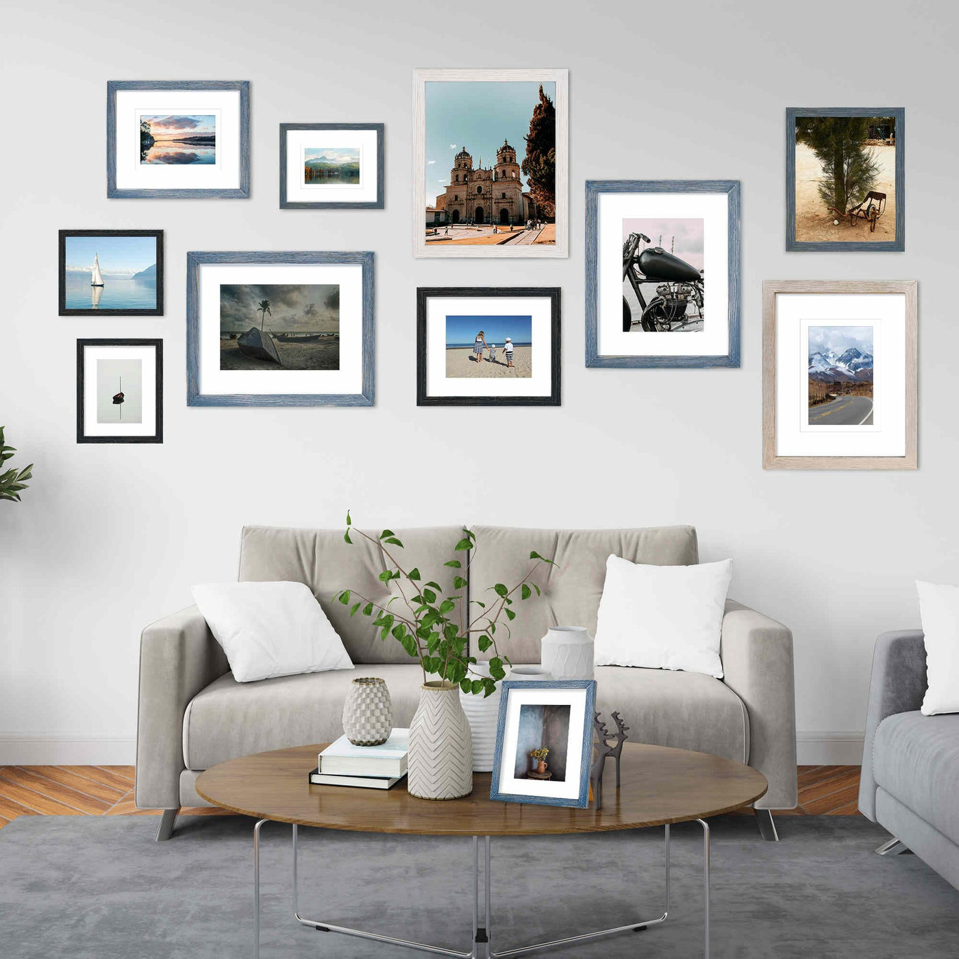 8x10 Hanging Picture Frames,Solid Wood,Not Glass,Display Pictures 4x6,5x7 with Mat or 8x10 Without Mat,Stable Sturdy Picture Fra