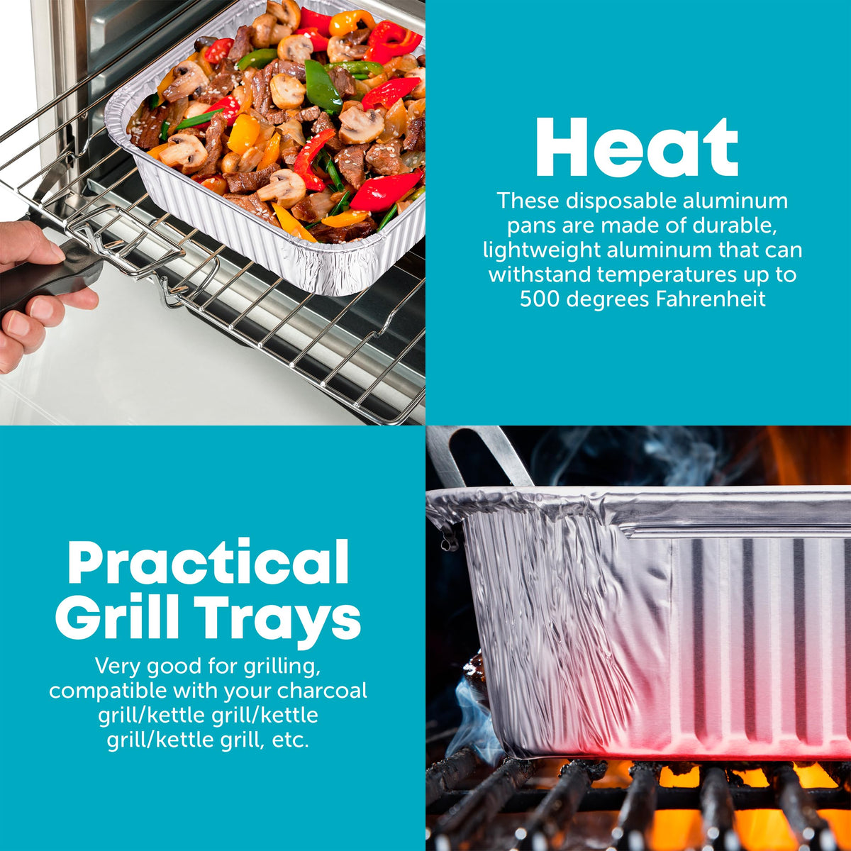 - Q: Can I use these pans for grilling? A: Yes, these aluminum pans can be used for grilling. They are durable enough to hold food securely while grilling on a barbecue or stovetop.