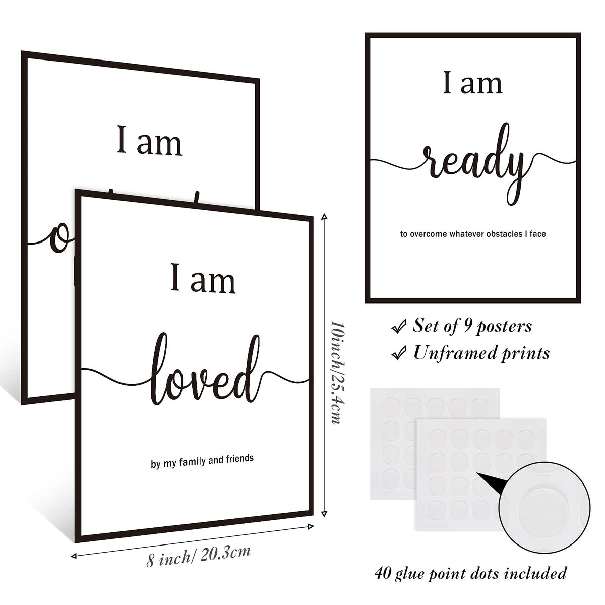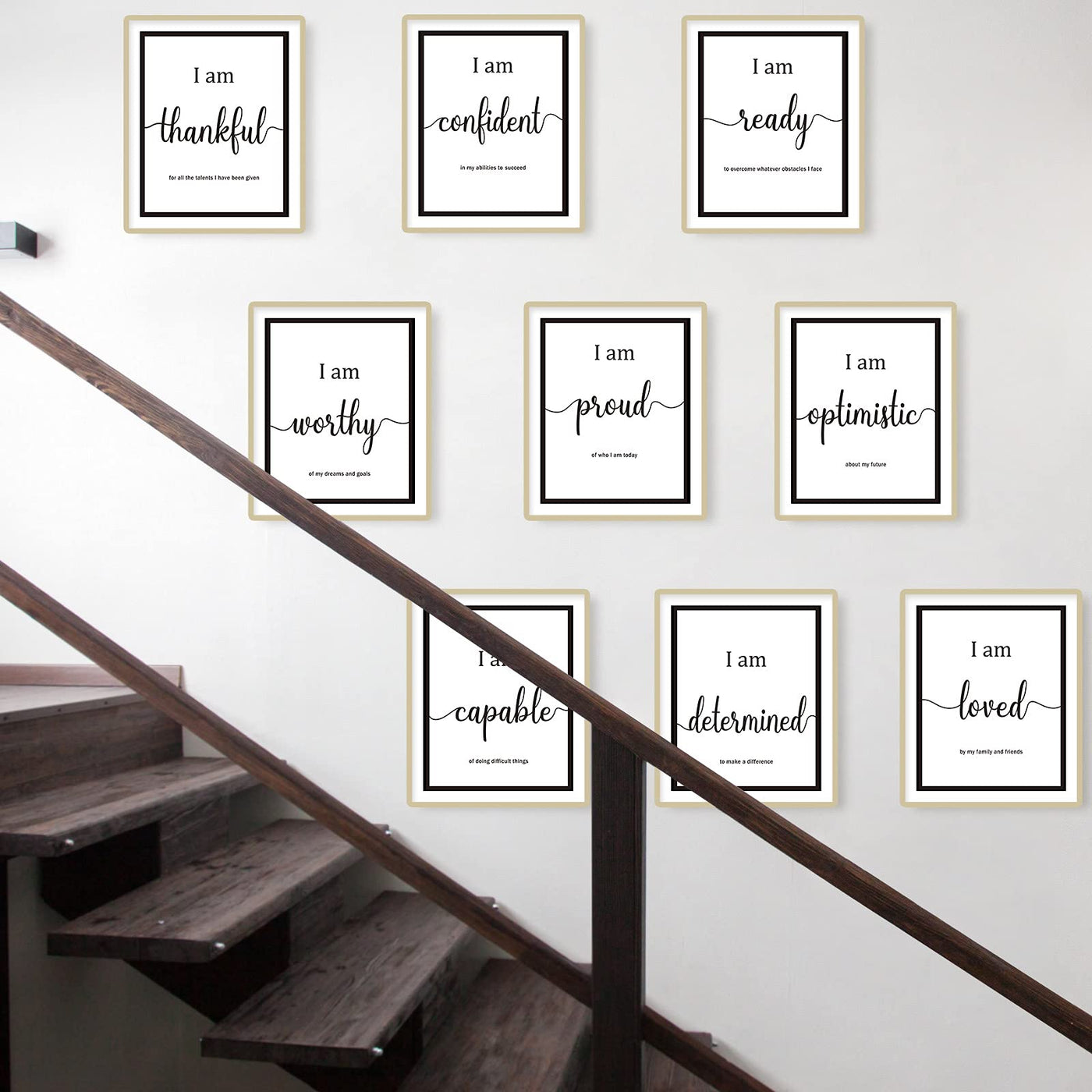 9 Pieces Inspirational Motivational Wall Art Office Bedroom Wall Art, Daily Positive Affirmations For Men Women Kids Inspiration
