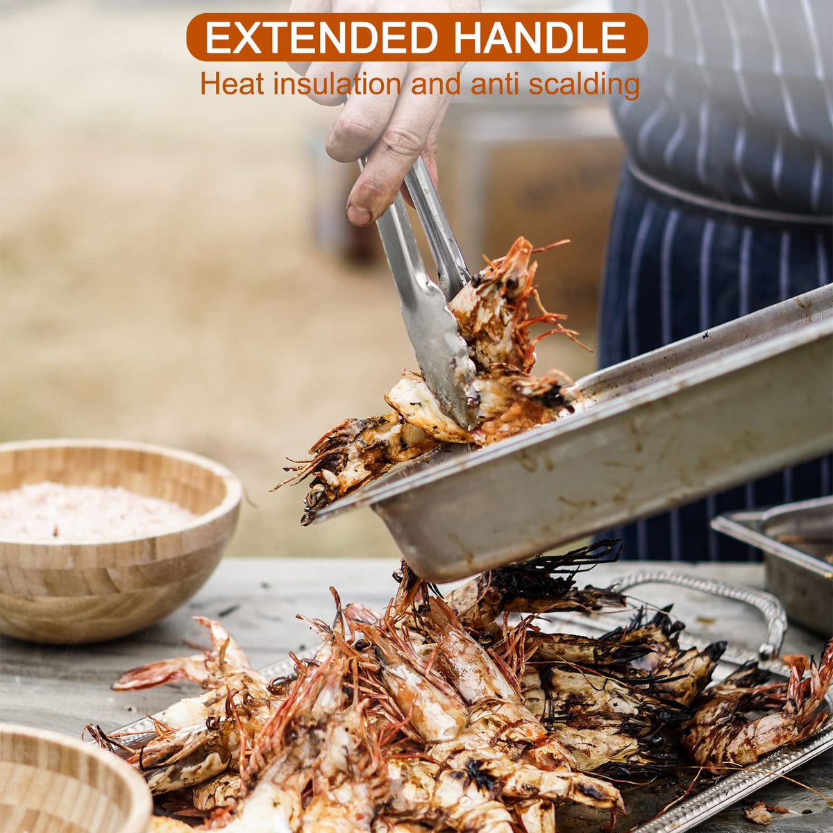 - Q: What makes the handles of these tongs ergonomic? A: The handles are cushioned with food-grade non-slip silicone, providing a comfortable grip and ensuring control while cooking.