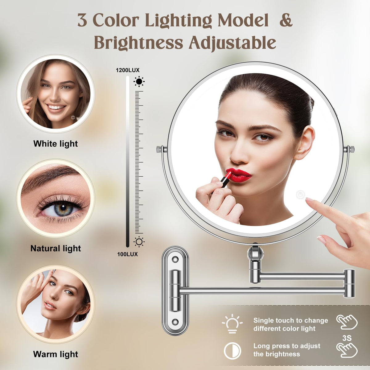 - Q: What type of lighting does the mirror provide? A: The mirror offers three color lighting options: white, warm, and natural light, which can be easily changed to suit different makeup needs.