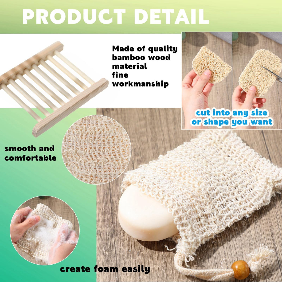 - Q: Are the materials used in this set durable? A: Yes, the wooden soap holder is made from quality wood, while the soap pads are made from tear-resistant PVC, and the exfoliating pouches are made of durable cotton and linen.