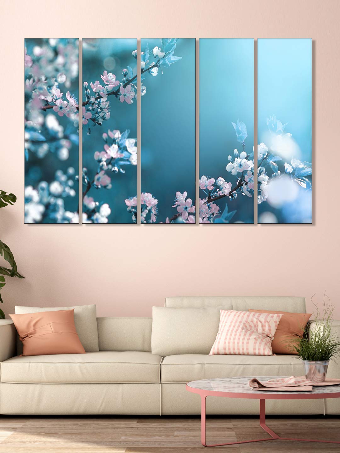 999Store White Flowers Mdf Art Panels (Mdf/Vinay_30X51 Inch_White) 5Frames0410