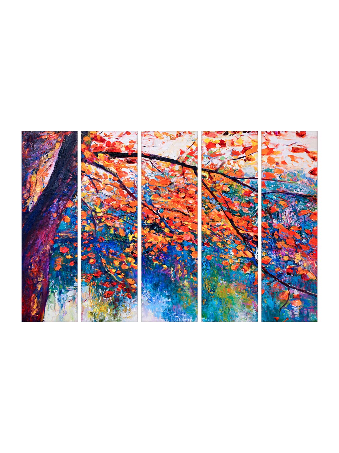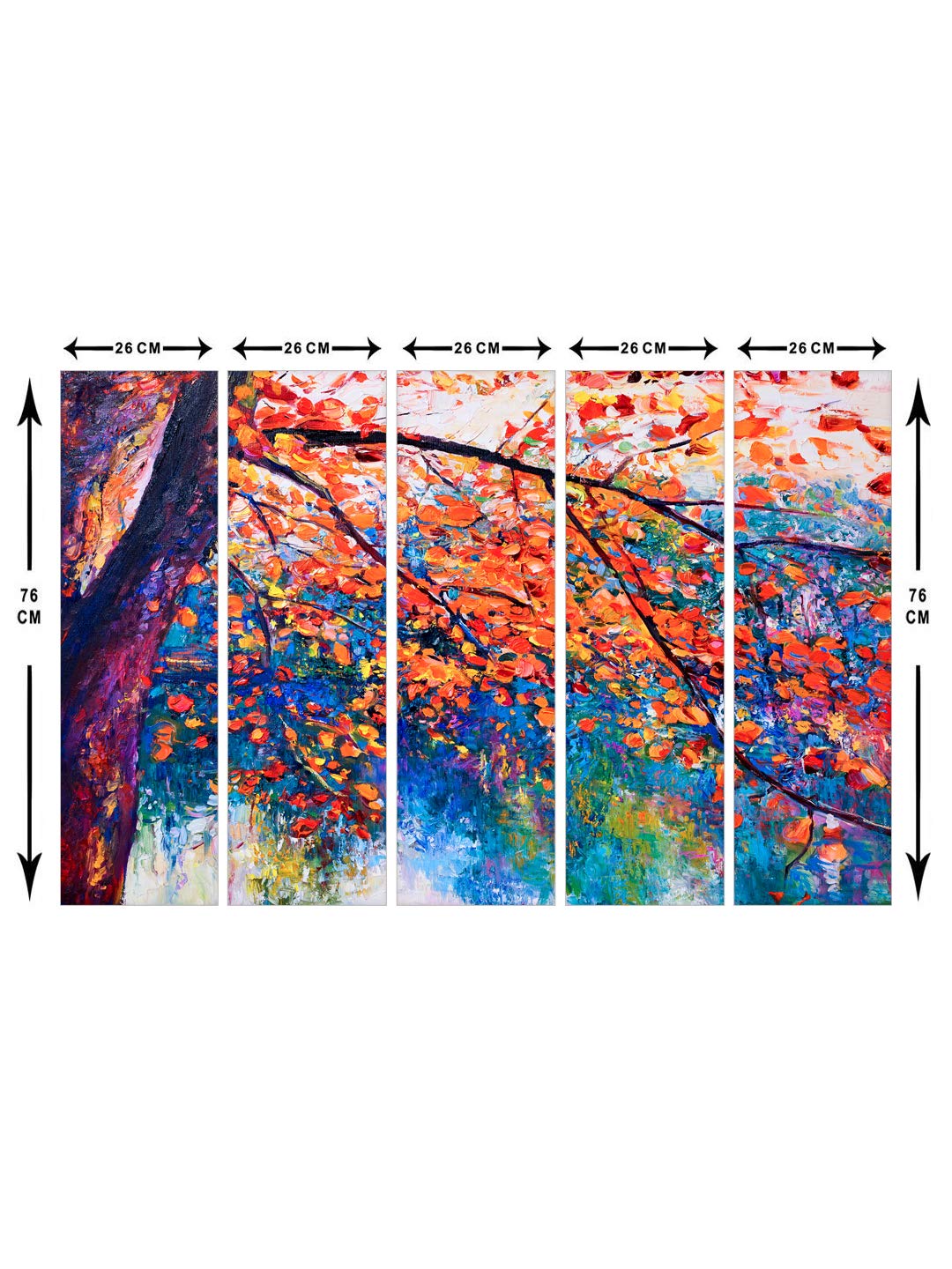 999Store Yellow Leaves Tree Mdf Art Panels (Mdf/Vinay_30X51 Inch_Yellow) 5Frames0432