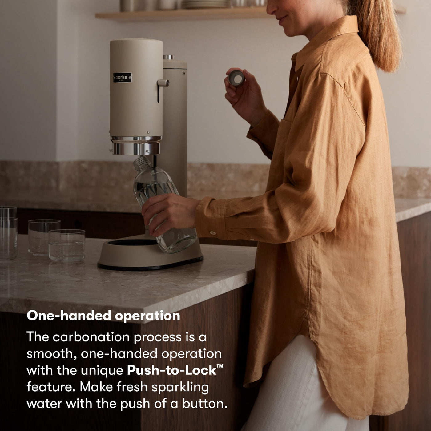 Aarke Carbonator Pro, Sparkling & Carbonation Water Machine, Stainless Steel With Glass Reusable Bottle Volume 800 Ml (Sand)