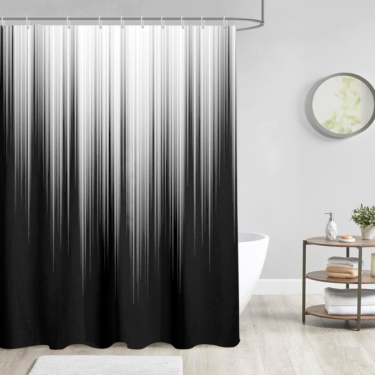 Aatter Black And Grey Shower Curtain White Gray Ombre Mens Decorative Trendy Simple Silver Abstract Artistic Aesthetic Fabric Ho