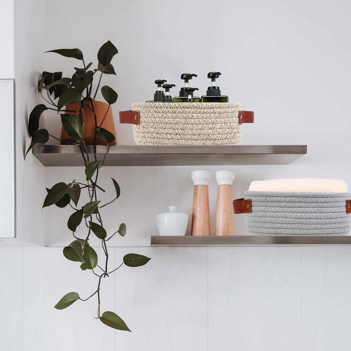 Abenkle Small Storage Basket, Mini Basket, Cute Tiny Cotton Rope Woven Basket, Shelf Basket, Boho Decorative Toy Dog Cat Basket