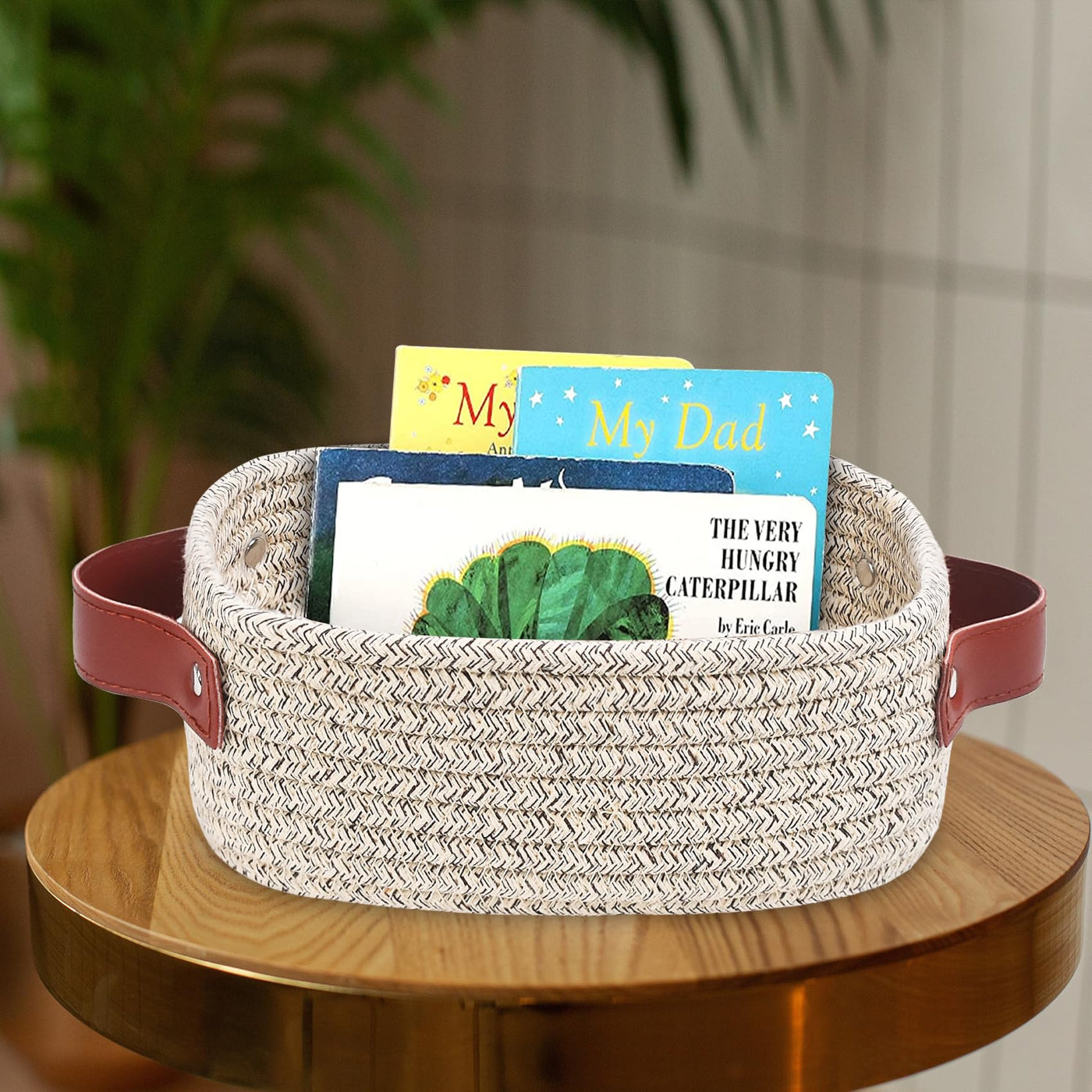 - Q: What types of items can I store in this basket? A: You can store a variety of small items such as toys, books, makeup, keys, and craft supplies in the basket.